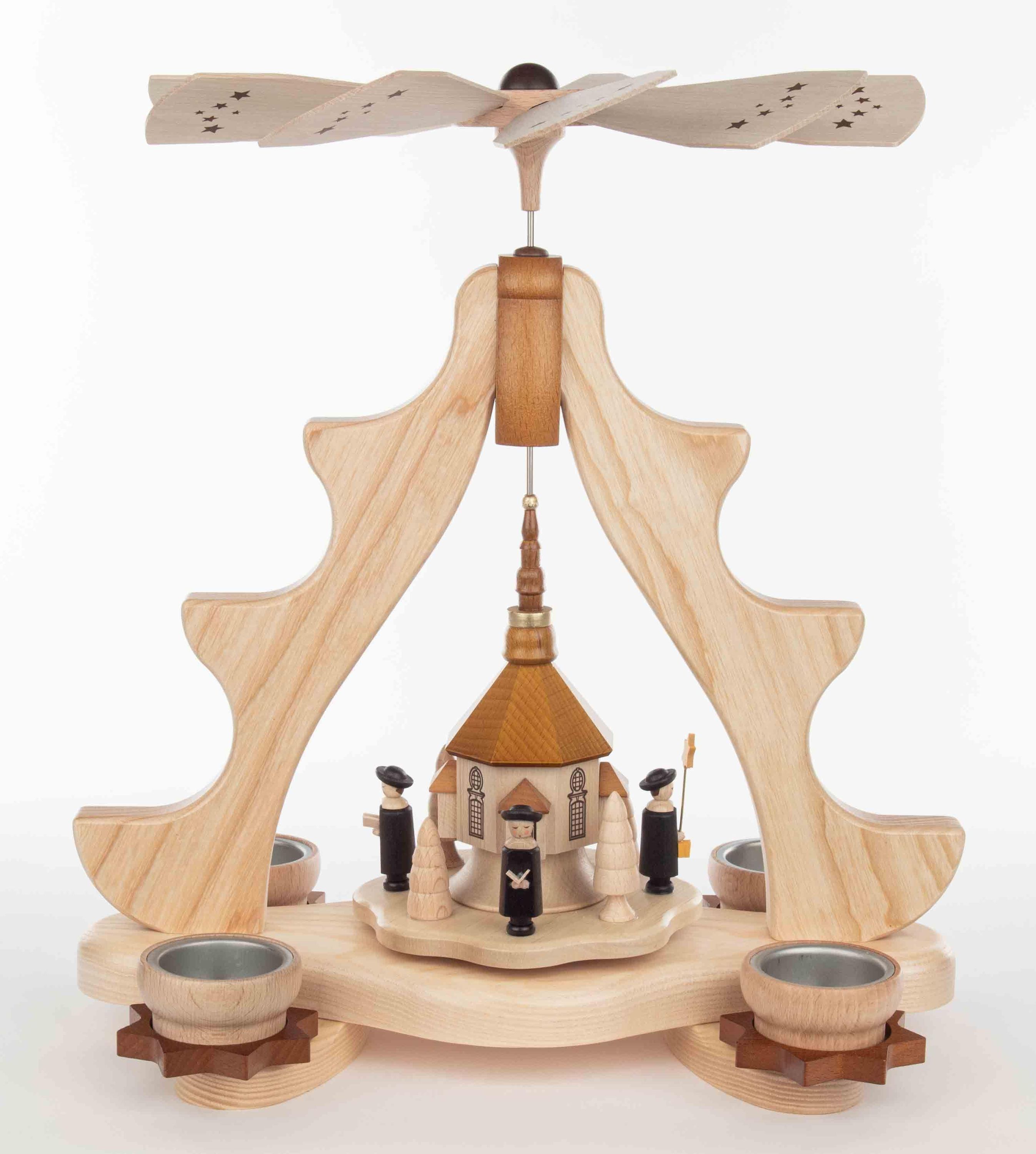Tischpyramide Kurrende mit Seiffener Kirche und Teelichter HxLxB 32x20x37cm NEU
