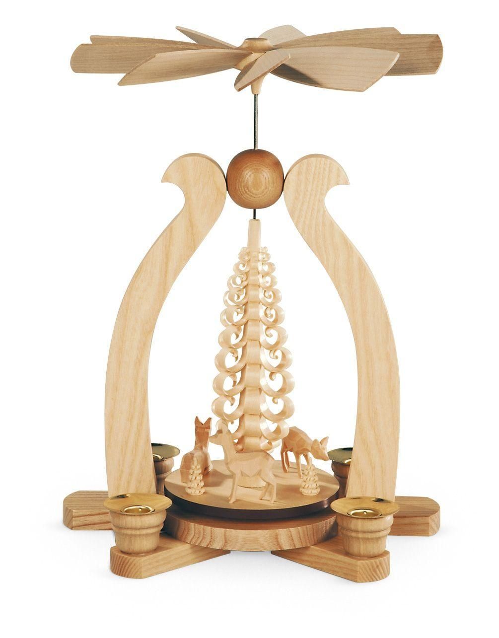 Tischpyramide Rehe geschnitzt 1-stöckig natur für Kerzen (LxBxH):22x15x29cm