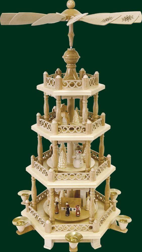 Tischpyramide Schneemänner mit Kirchdorf natur 3 stöckig Höhe= 57cm NEU Holzpyram