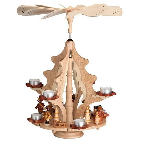 Tischpyramide Winterkranz mit Winterkinder und Teelichter HxLxB 37x37x48cm NEU