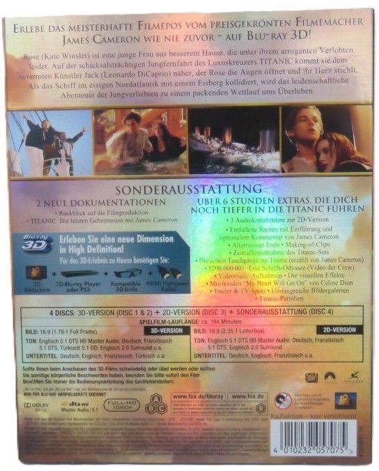 Es ist doch überraschend, dass ein Film der gar nicht in 3D aufgenommen wurde, ein so tolles 3D Erlebnis sein kann. Lieferung erfolgte ausgesprochen Zeitnah, Produkt ist genau wie beschrieben. So sollte es immer sein. Bin wirklich sehr zufrieden. Gerne wieder!