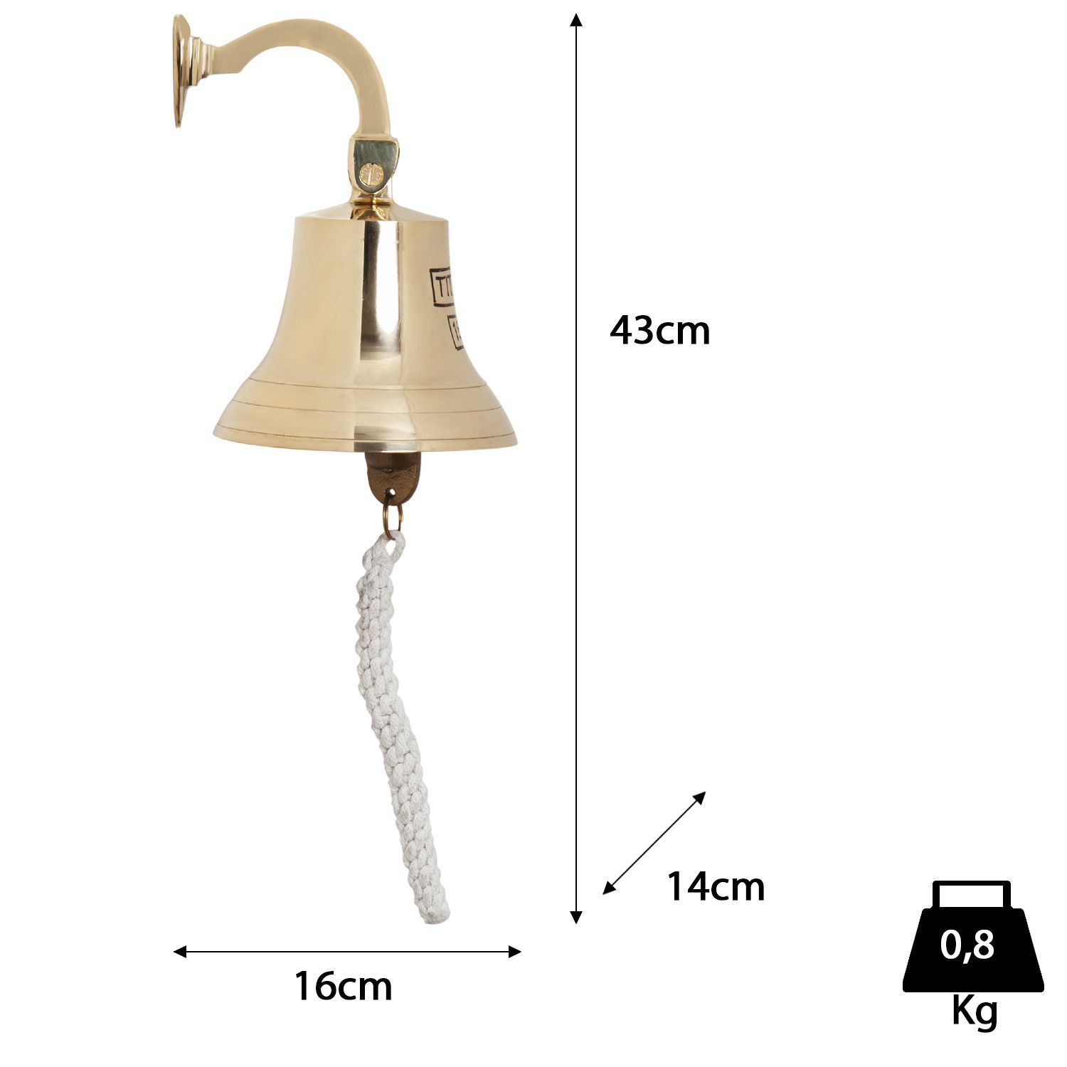 Titanic Wandglocke Schiffsglocke Messing Klingel Tür Glocke mit Seil 38 cm
