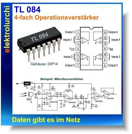 Sie bieten hier auf folgenden Artikel 2 Stück TL084C - 4-fach Operationsverstärker, TL 084, DIP14, Motorola Gehäuse: DIP 14 Hersteller: Motorola