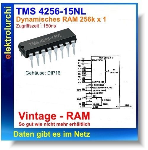 TMS4256-15NL - Dynamisches RAM 256k x 1-Bit, IC DIP16 , TMS 4256, ST, Rare,1St.
