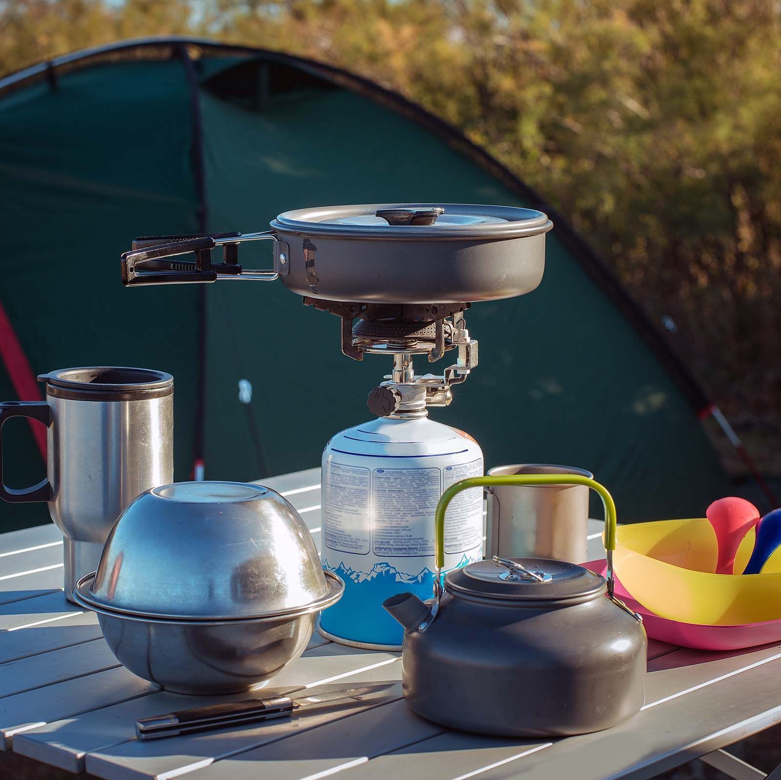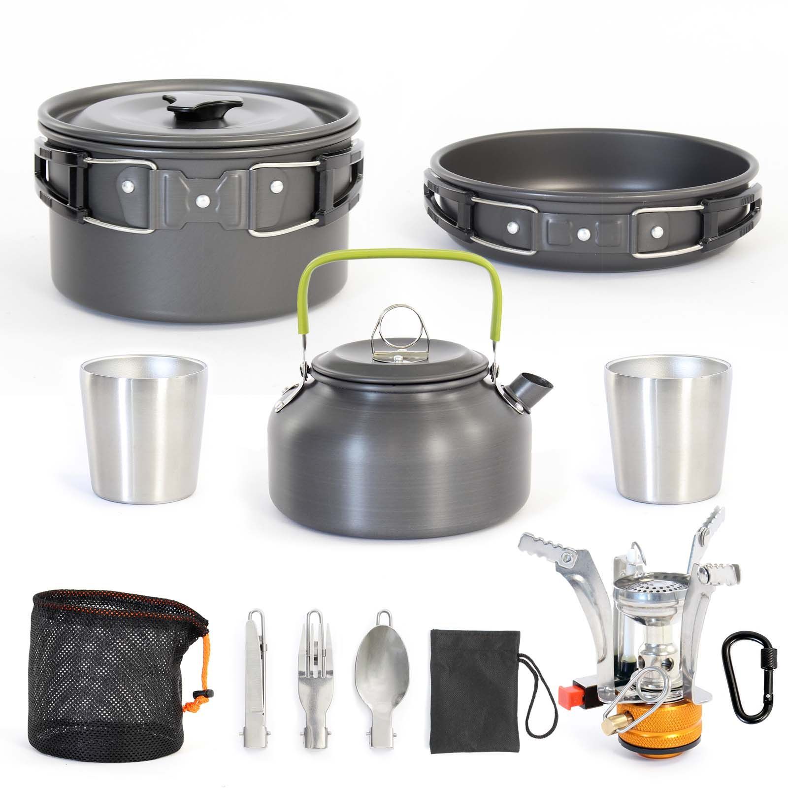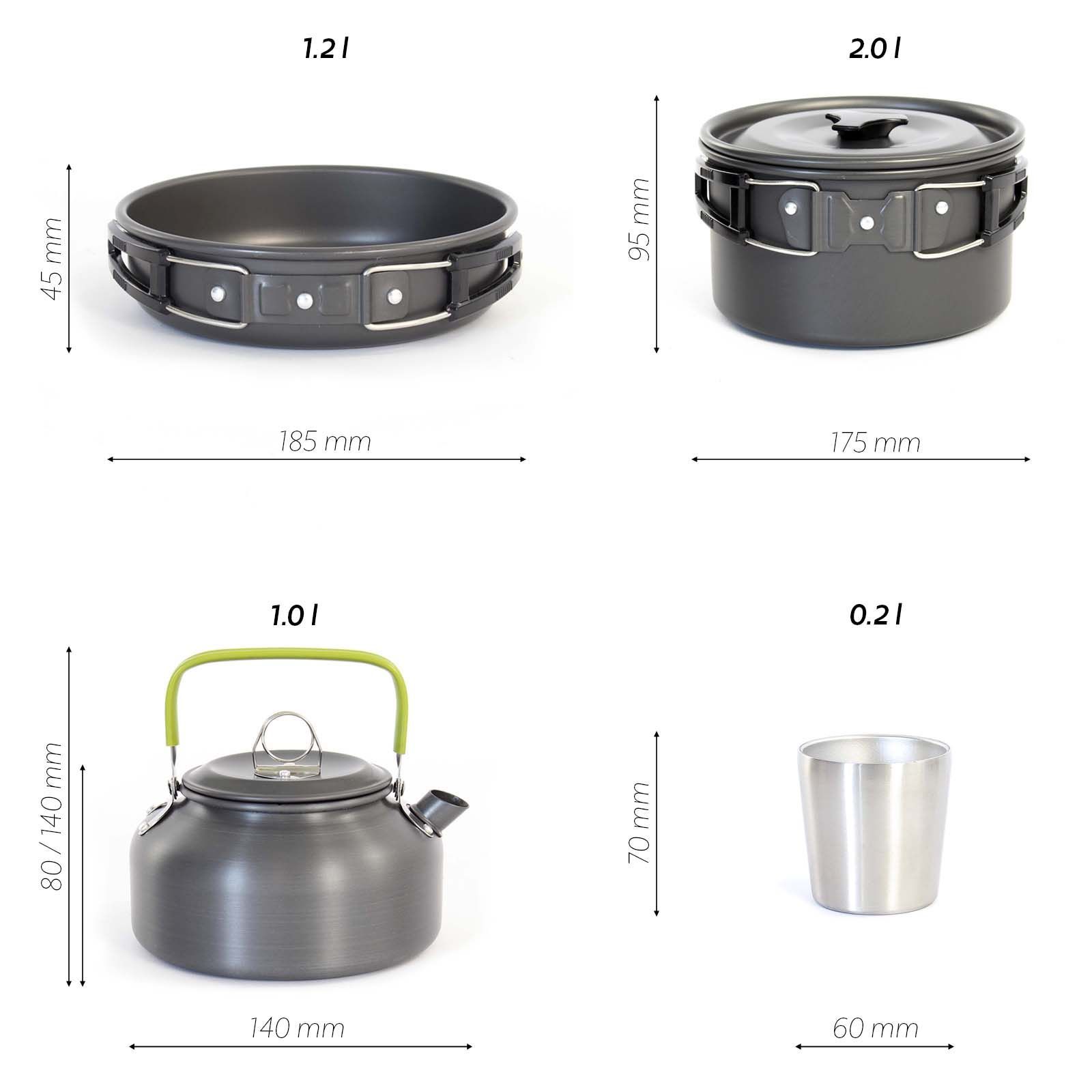 Toboli Camping Geschirr Set 12 tlg. Kochgeschirr Outdoor Geschirr Besteck