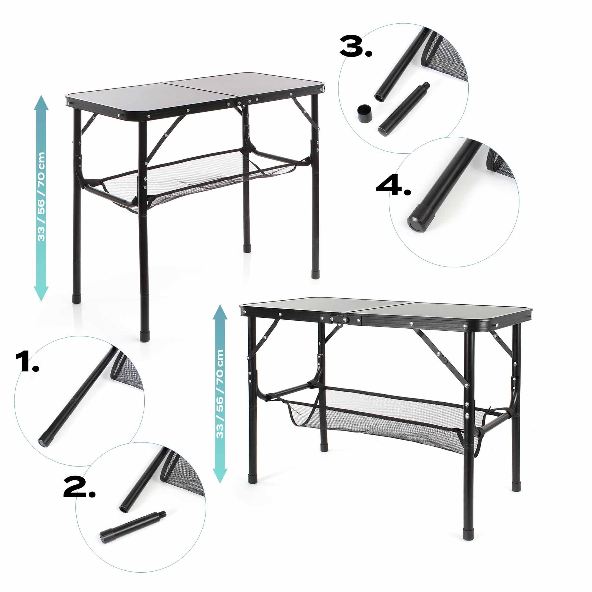 Toboli Campingtisch Schwarz 80x40cm höhenverstellbar 31/45/56/70 cm Aluminium