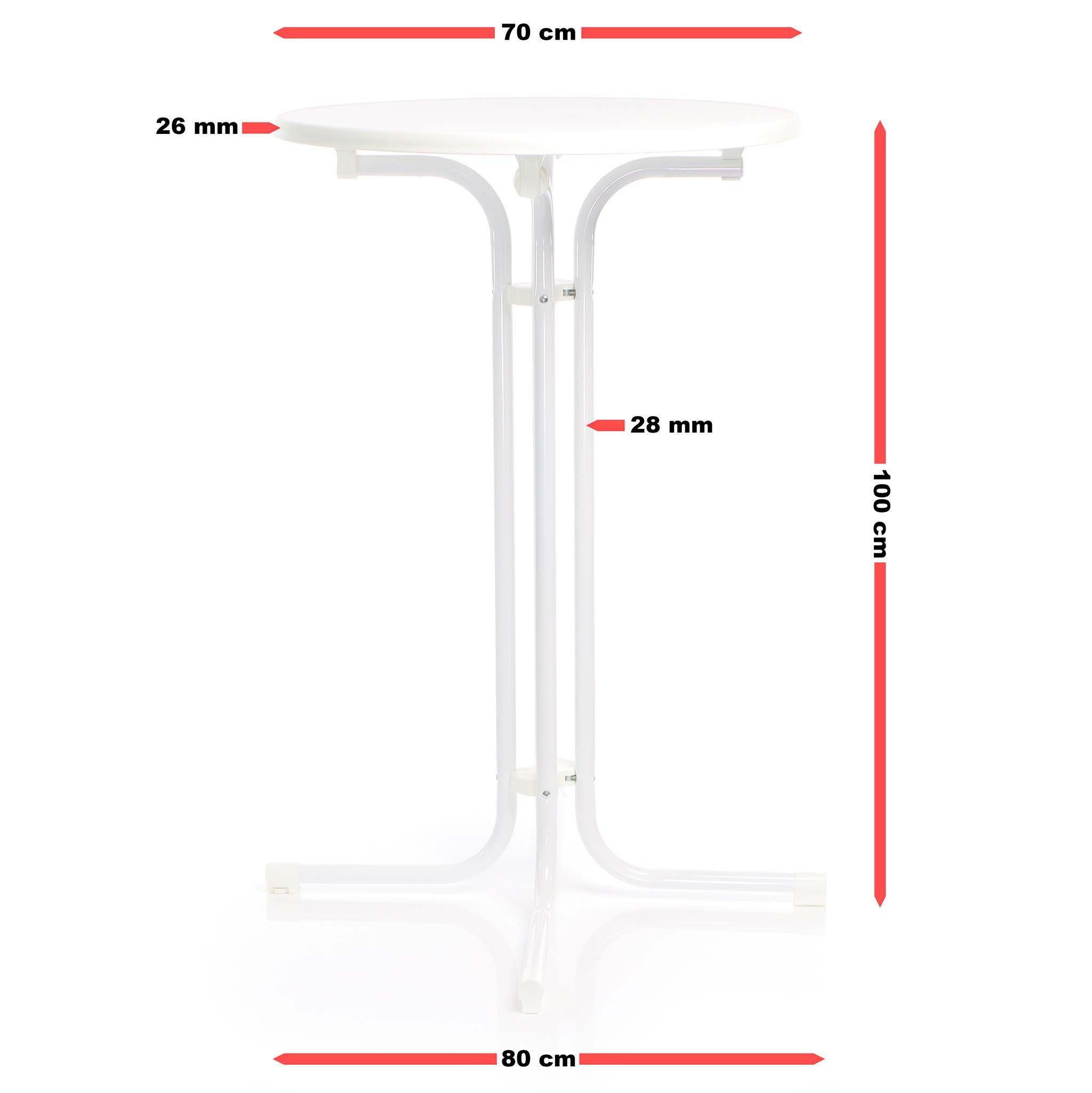 Toboli klappbarer Bistrotisch Weiß Ø 70 cm Stehtisch Bartisch Partytisch rund