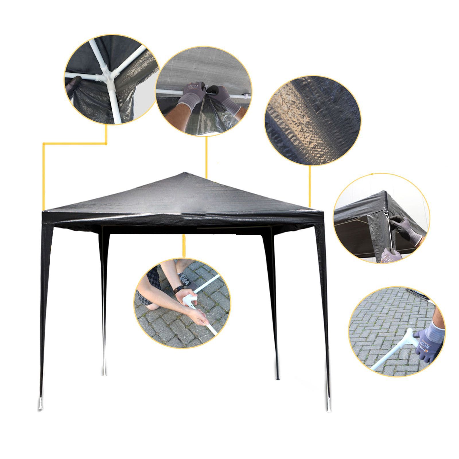 Toboli Pavillon 3x3m in Grau mit UV-Schutz 50+ Gartenpavillon Partyzelt Camping
