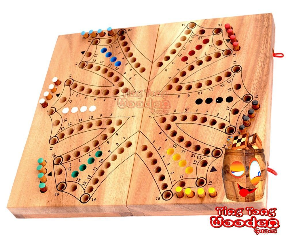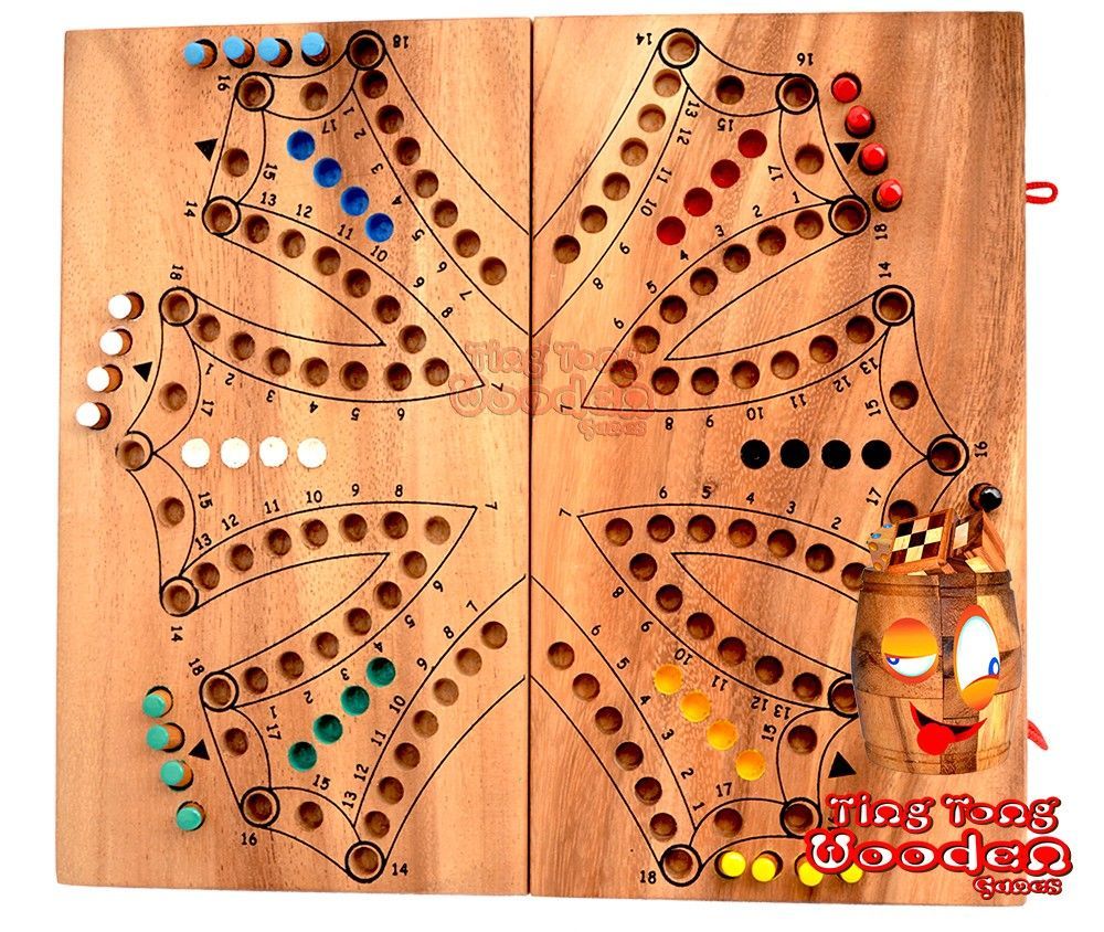 Tock Tock Game X-large Holz Brettspiel mit Spielkarten für 6 Spieler Ting Tong