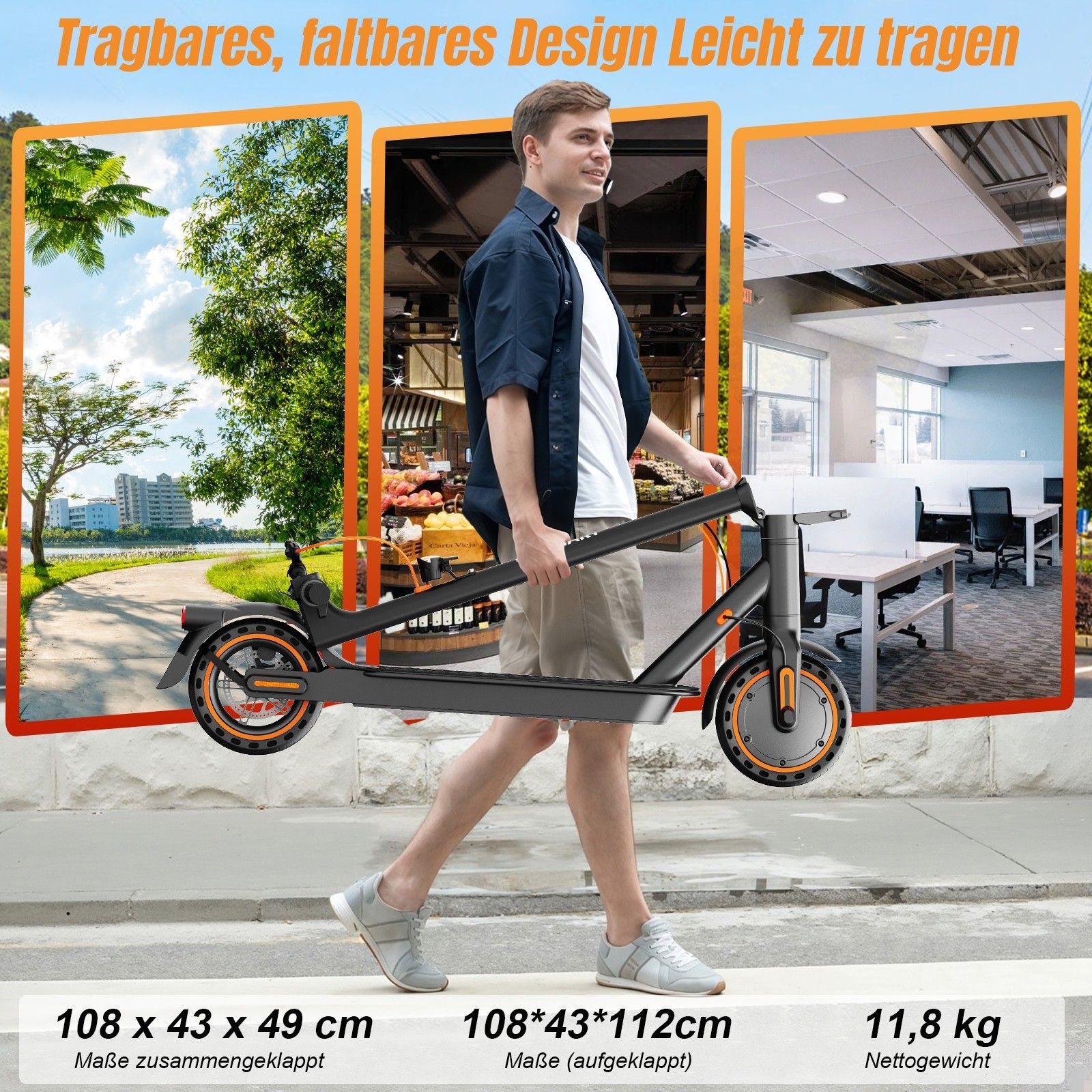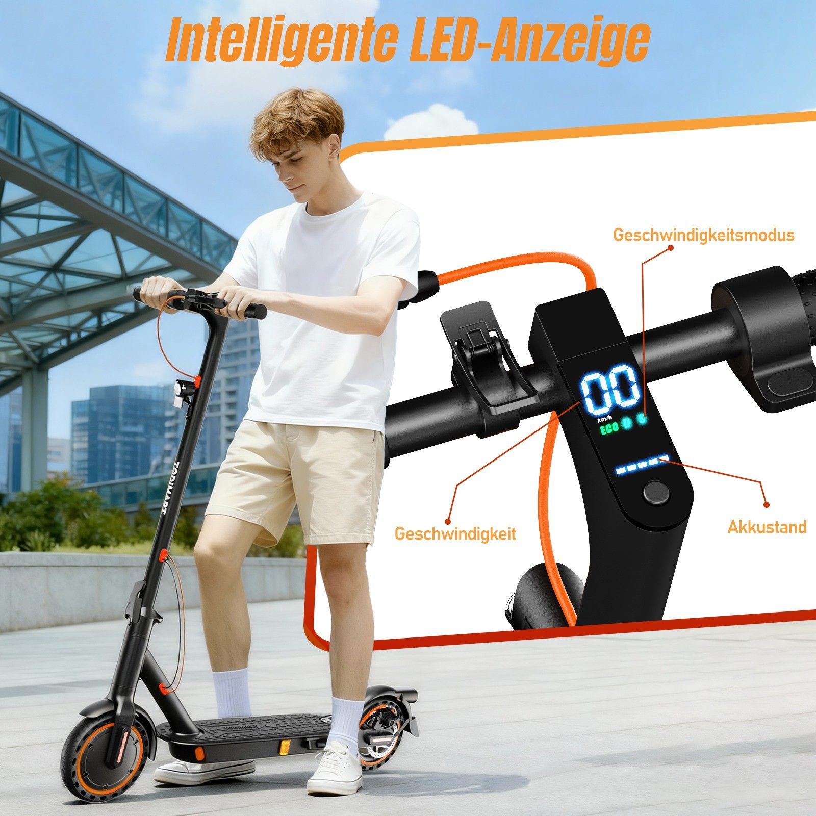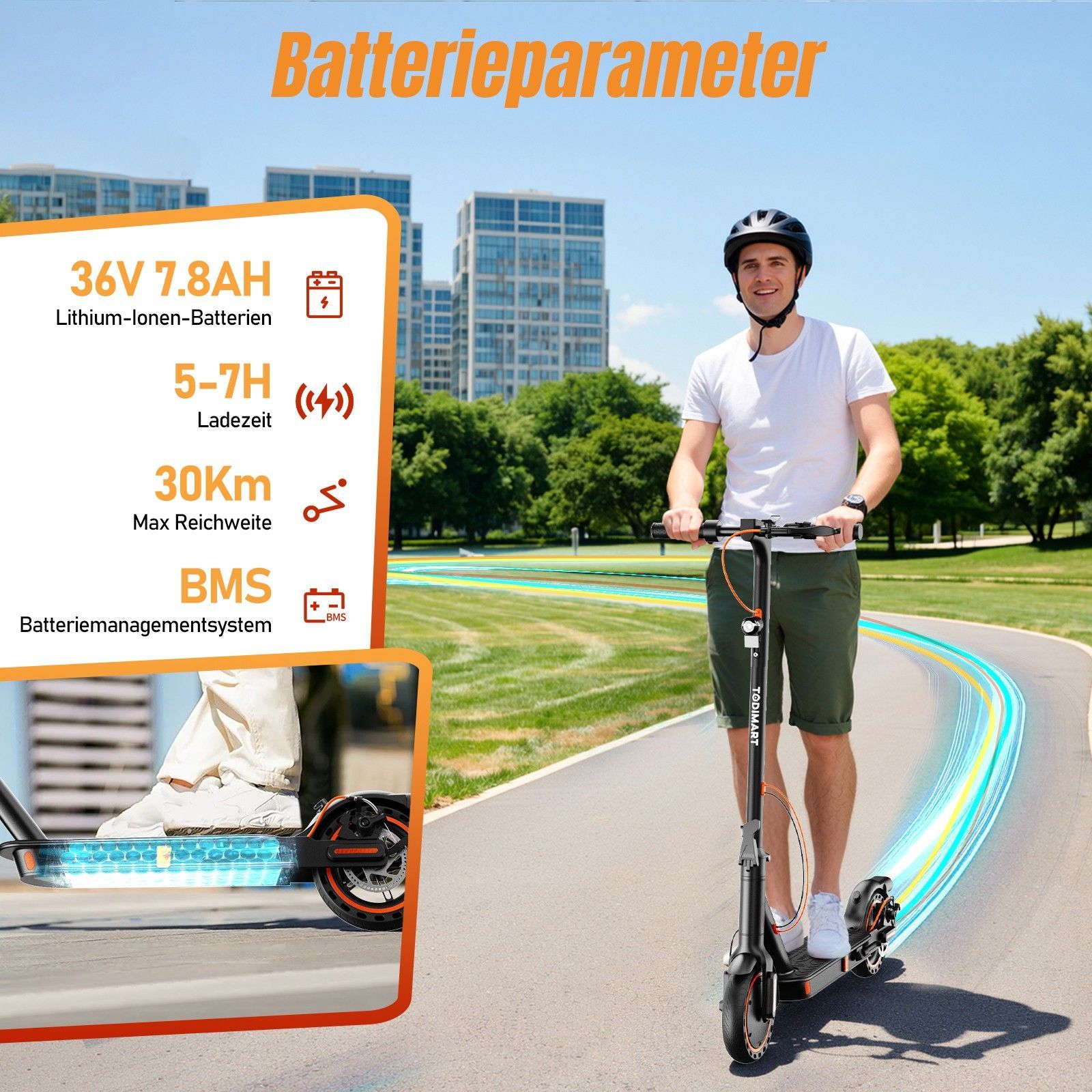 Todimart T3 Elektroroller, 350W Motor, 36V7.8AH Akku, 8.5 Zoll Reifen, faltbarer