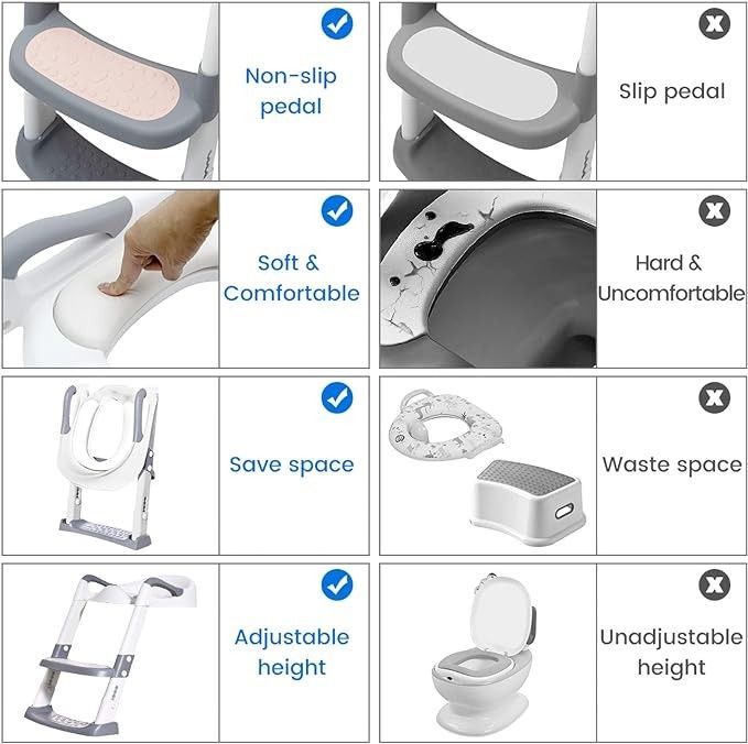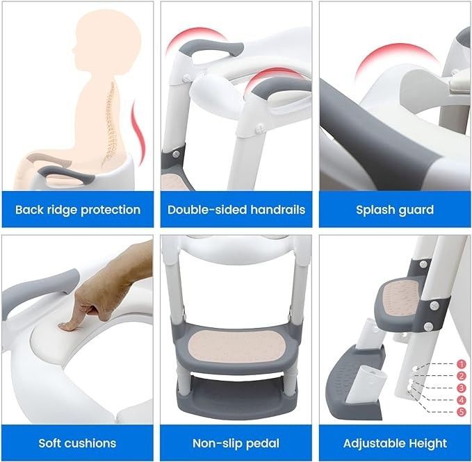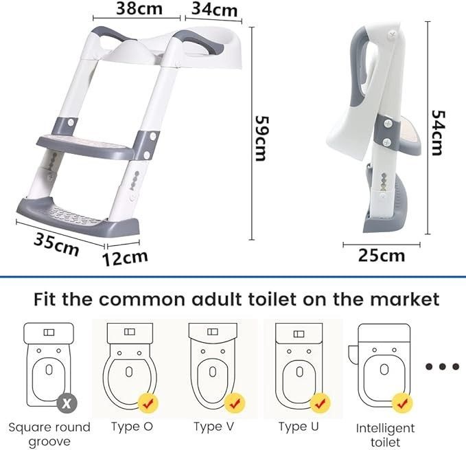 Töpfchen-Toilettensitz für Babys mit Treppe: Höhenverstellbar & Klappbar, Weiß