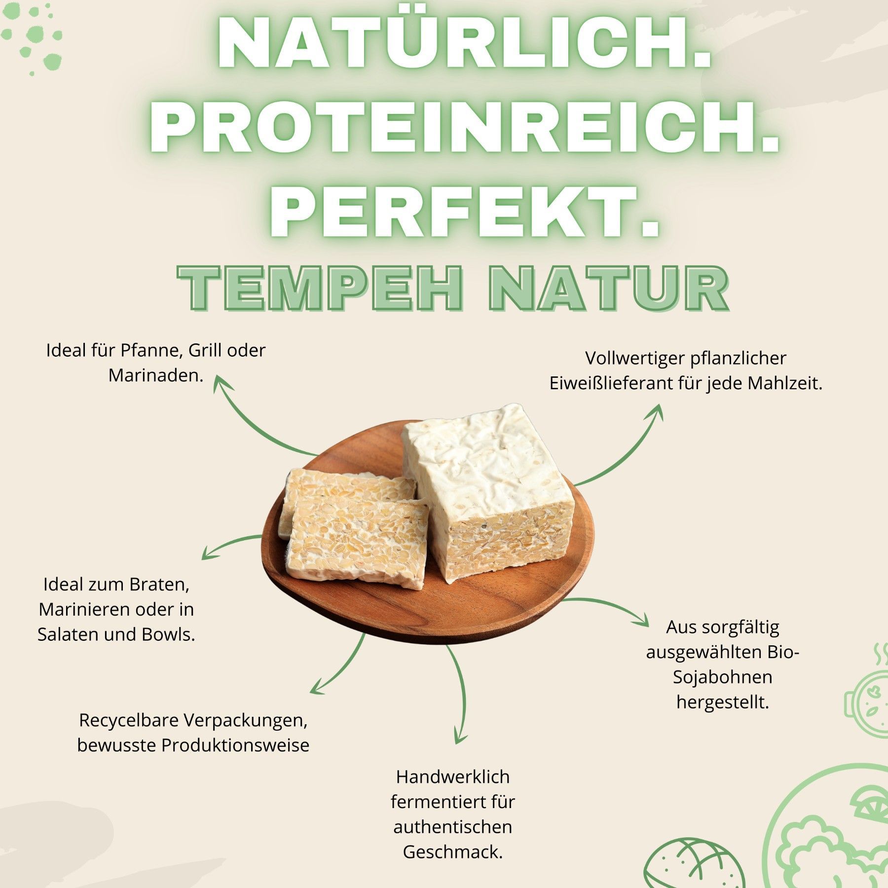 Tofu Nagel Tempeh 5x 200g kein Cholesterin & Gluten 100% BIO & vegan, aus Deutschland