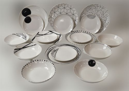 Tognana Tafelservice aus Porzellan, Weiß, 18-teilig, Geschirr, Teller Graphic