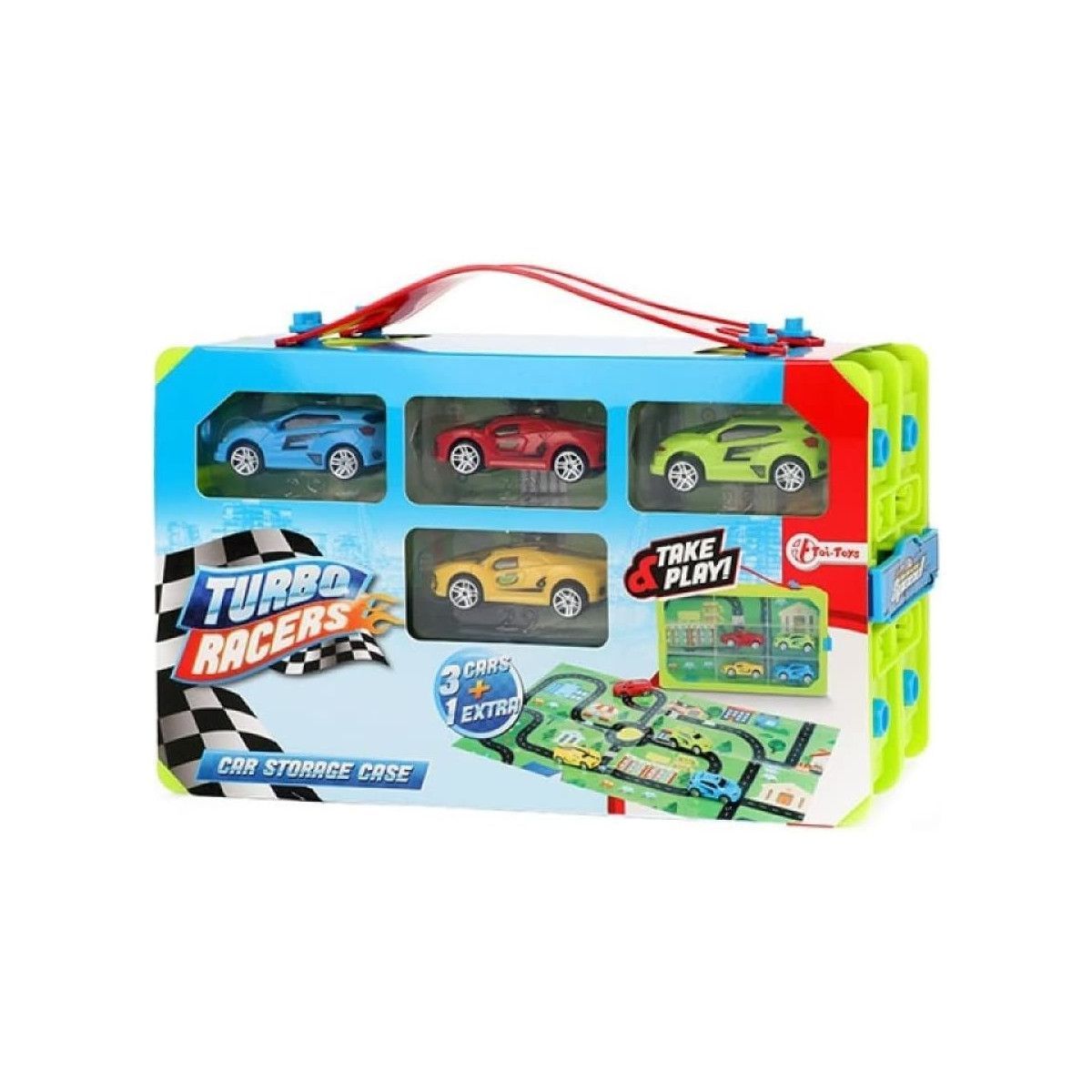 Toi-Toys - Turbo Racers Sammelkoffer mit 4 Rallye Autos Fahrzeuge Rennautos