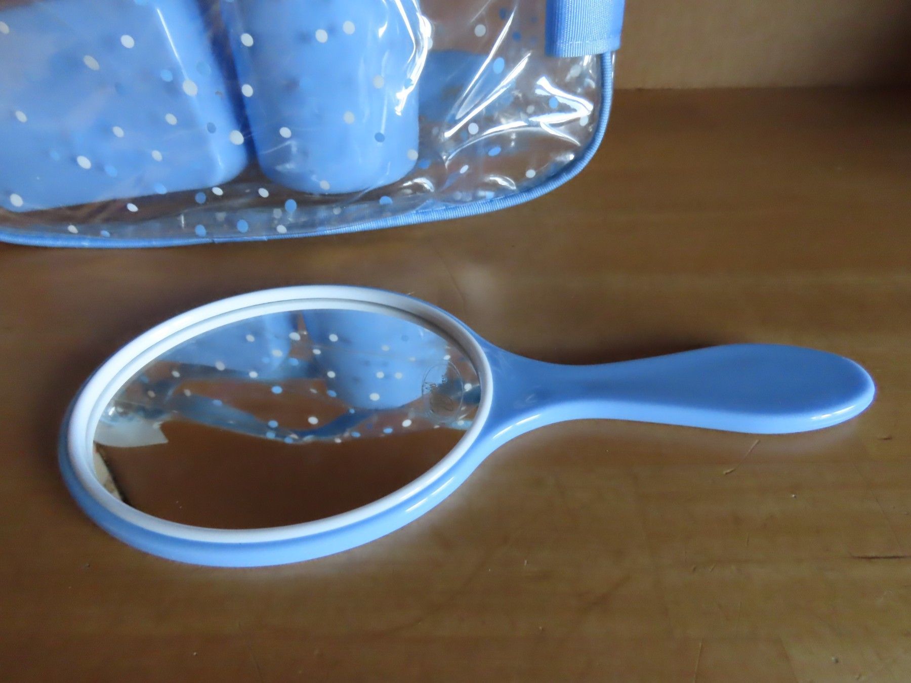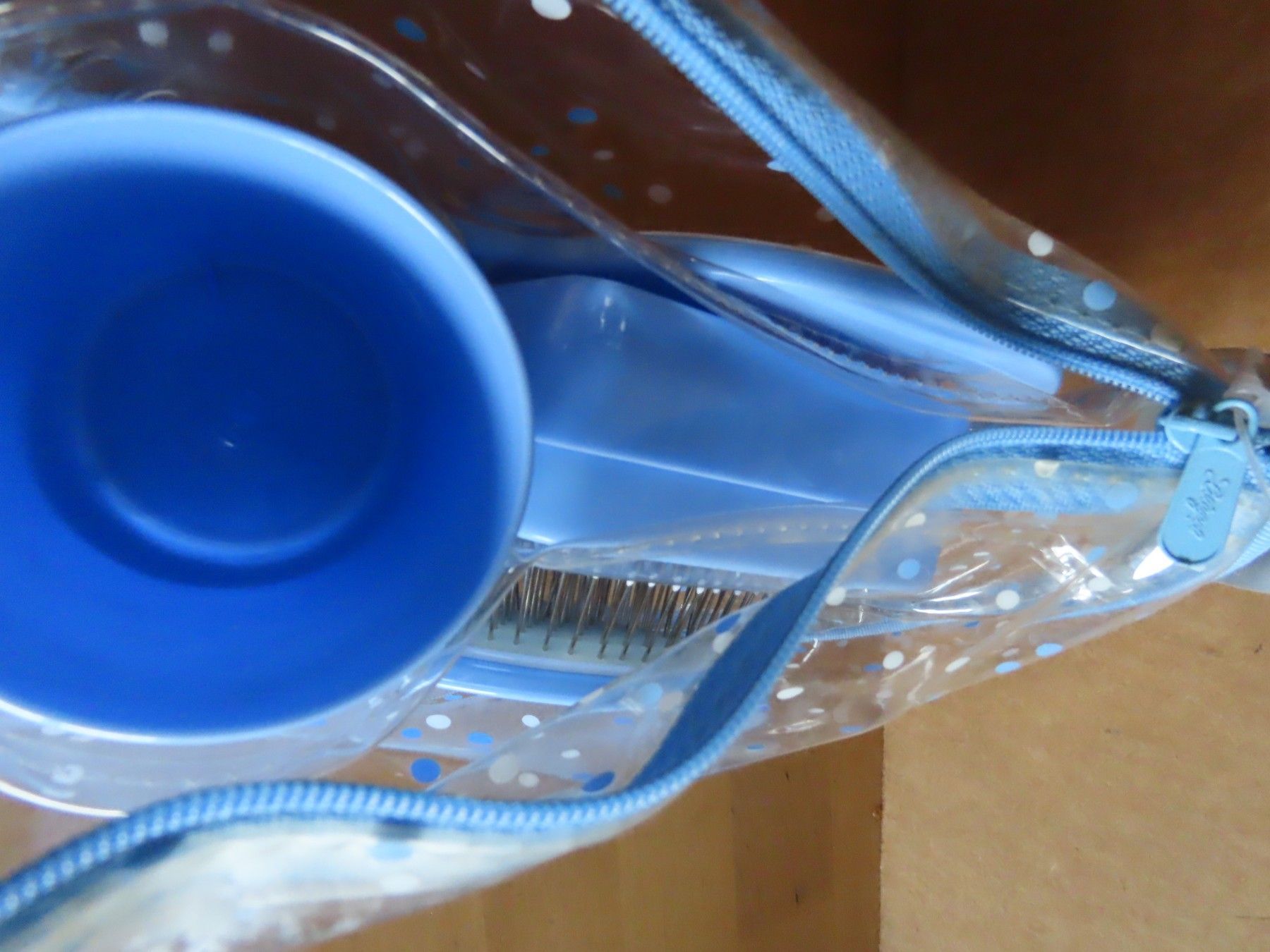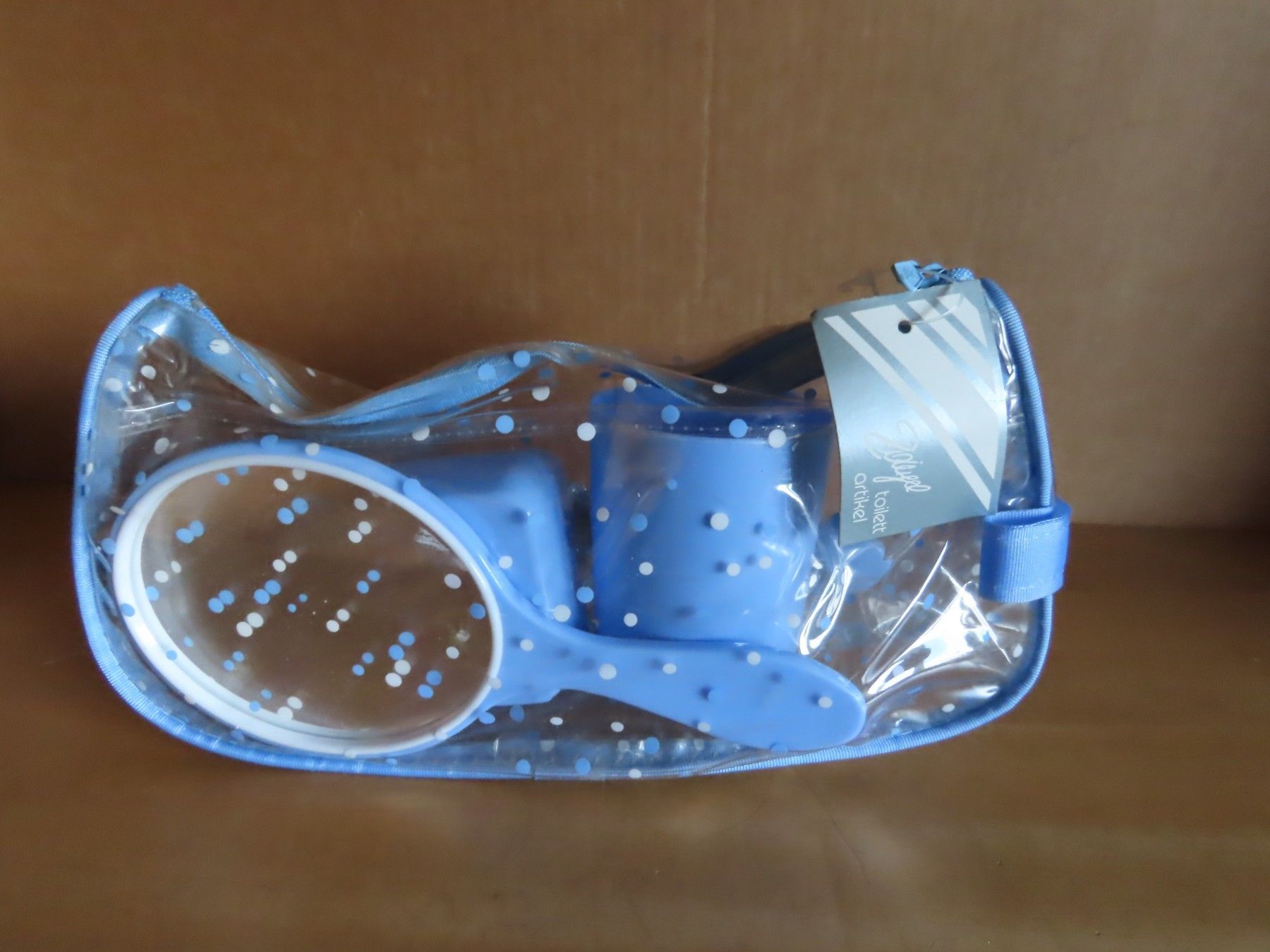 Toilett-Artikel hell blau Seifendose Zahnputzbecher Handspiegel Haarbürste