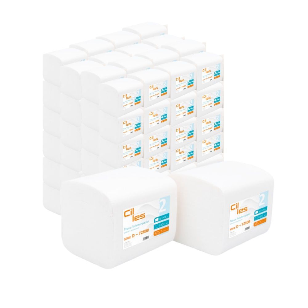 Toilettenpapier Einzelblatt, 2-lagig, 1440 Pak, 324.000 Blatt gesamt, 9000 Blatt/ Pak