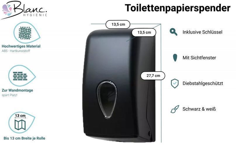 Toilettenpapierspender, abschließbar, Infinity, Kapazität: Einzelblattabriss bis max