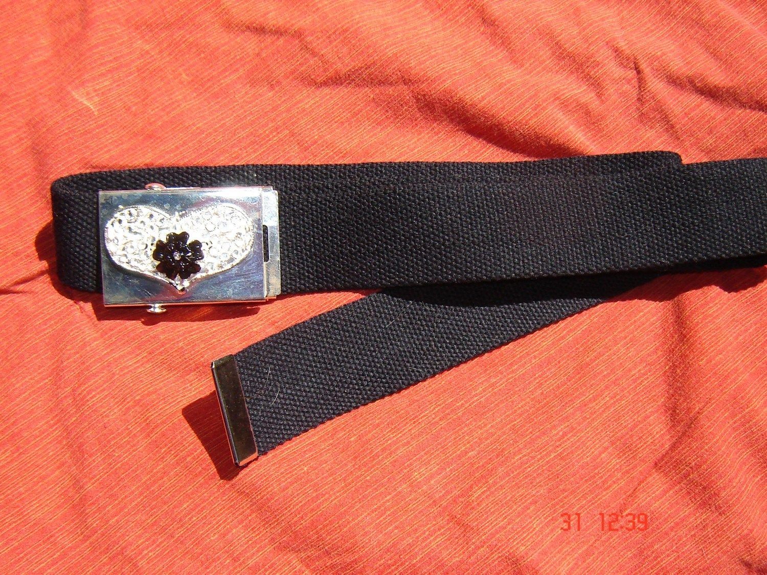 . ausgefallener Gürtel ungetragen stabiler Bandgürtel schwarz , festes Band mit glitzernder Schließe mit Herz und Blümchen der Gürtel ist gesamt 108cm lang inklusive Schließe und 3,8cm breit und ist stufenlos verstellbar . Bitte sehen Sie sich hier alle meine meine anderen Artikel an . . Hut Hüte Hu
