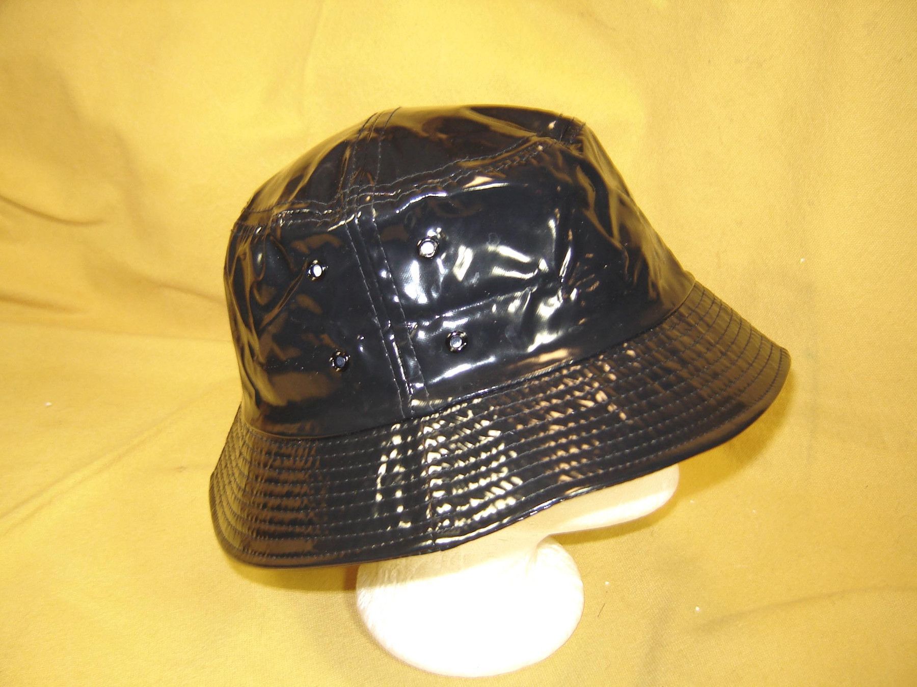 toller Regenhut marine ausgefallen Buckethat Kunstleder Lack rollbar p