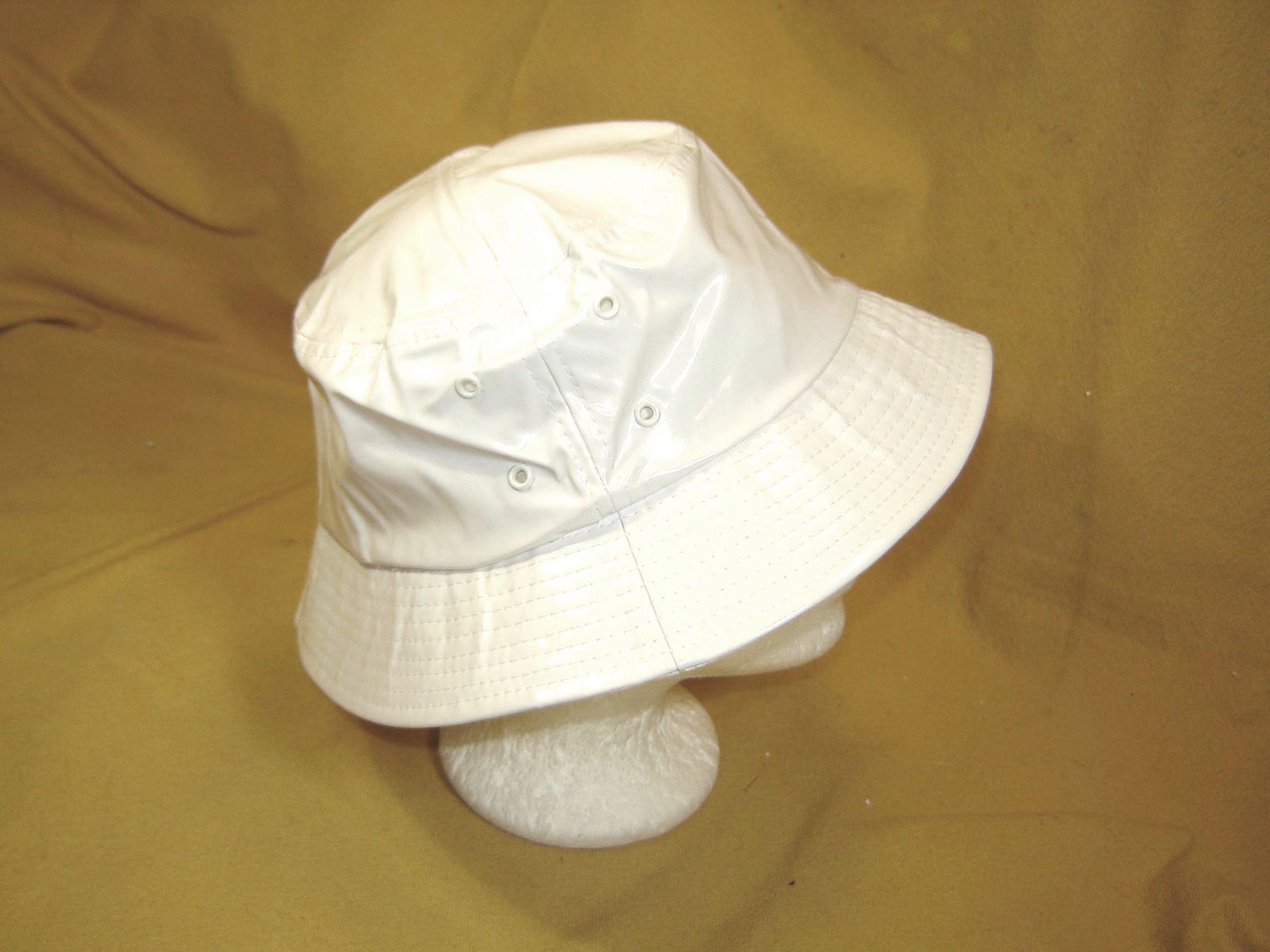 toller Regenhut weiß ausgefallen Buckethat Kunstleder Lack rollbar p