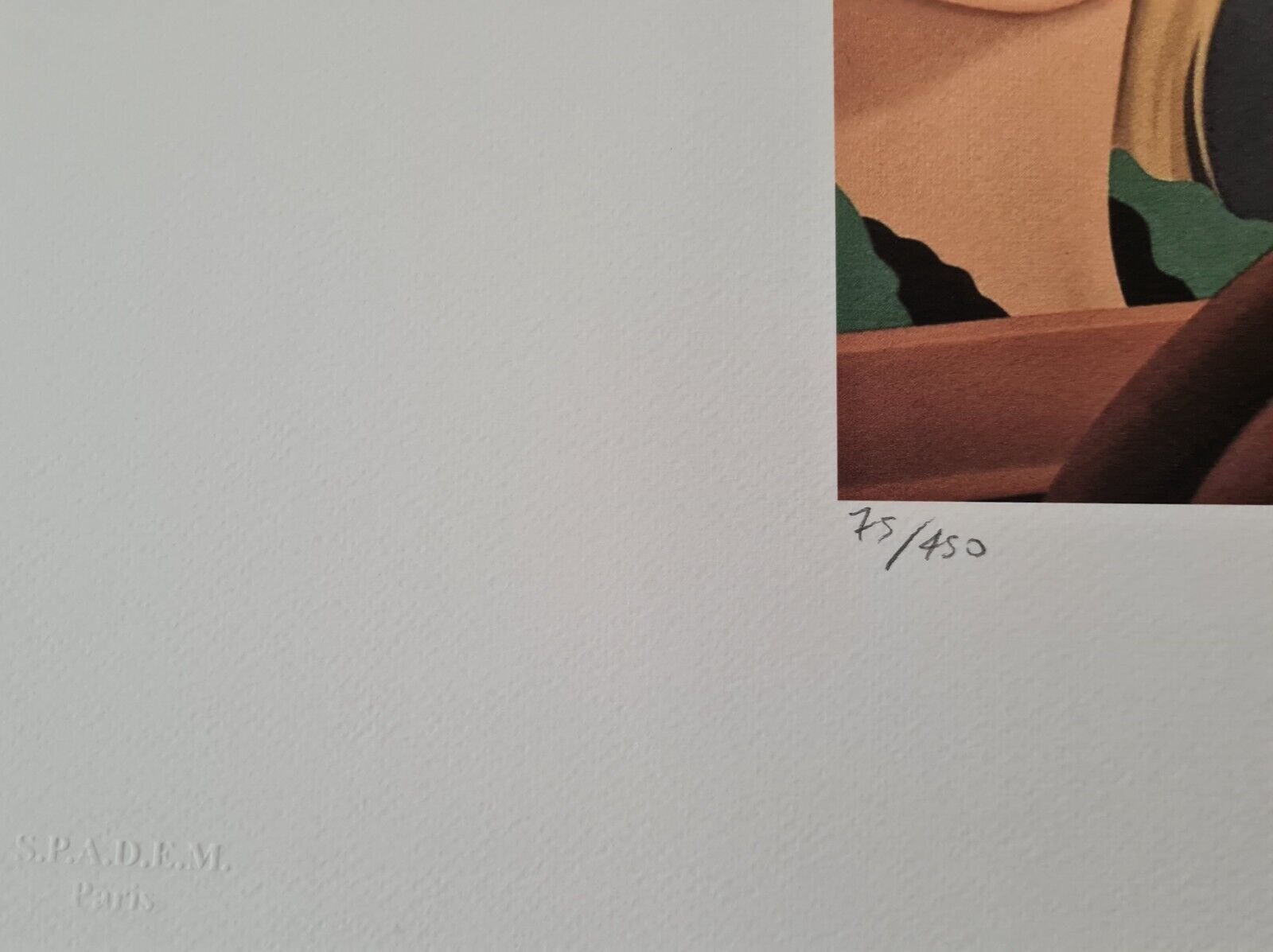 Lithographie Schlafzimmergemälde 38 Geprägter Stempel von S.P.A.D.E.M. Paris Das Blatt ist signiert und mit der Hand nummeriert und im Papier gestempelt Limitierte Auflage von 450 Stück Jedes Stück ist einzeln nummeriert 75 450 Gesamtgröße : 50 cm x 70 cm Nach dem Original von Tom Wesselmann Das Bla