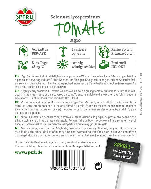 Sperli Tomate Agro F1 San Marzano Grilltomate, kräftig-würziges Aroma