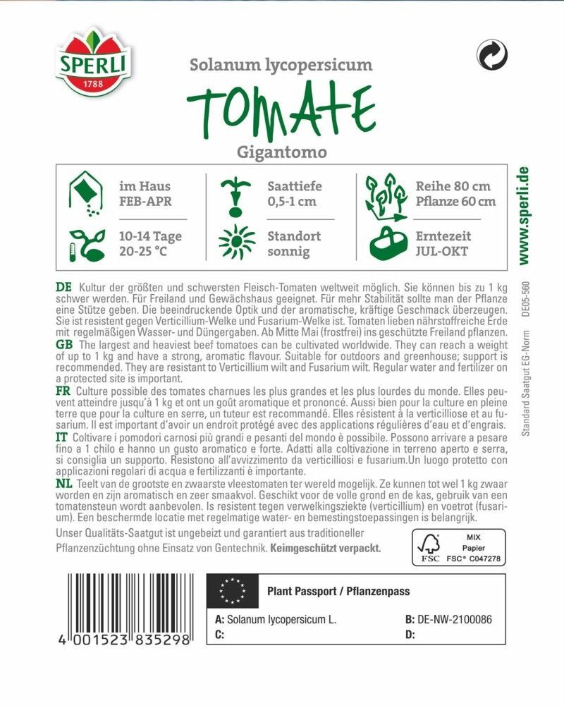Sperli Tomate Gigantomo F1 (Fleischtomate) größte Tomate der Welt, sehr aromatisch,