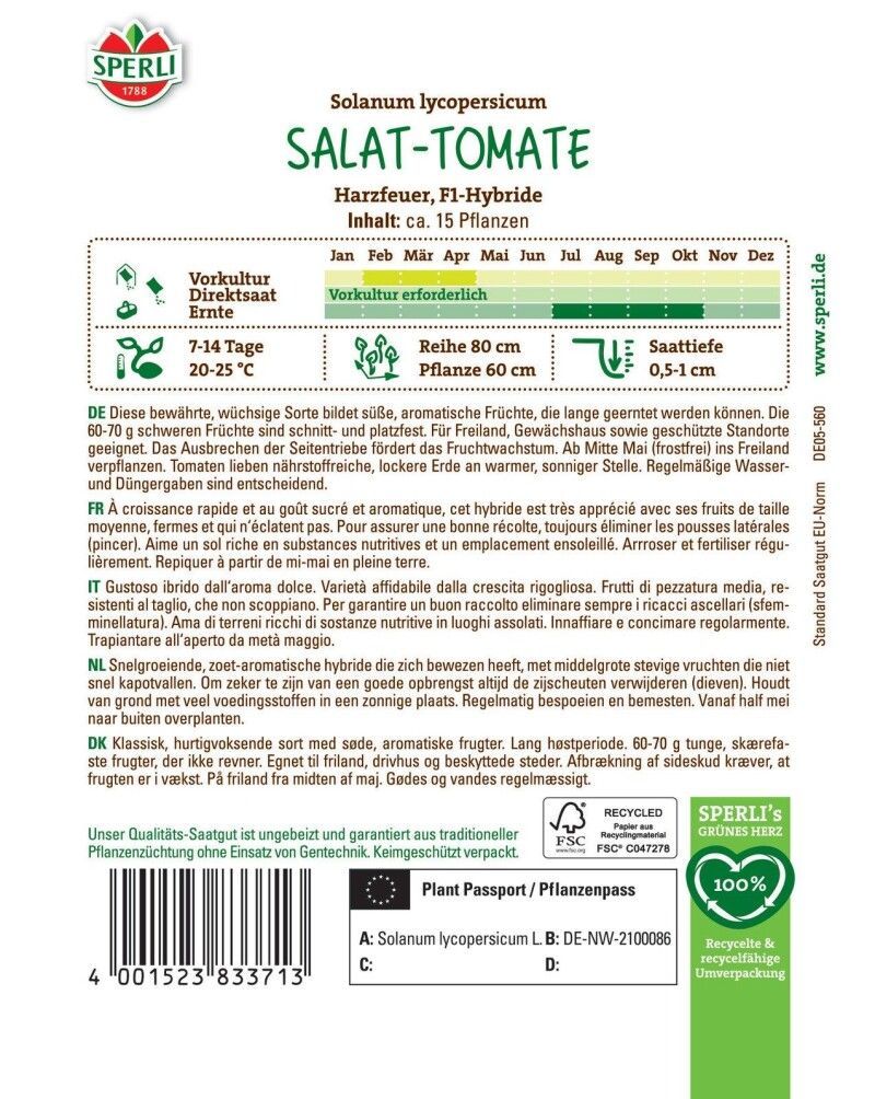 Sperli Tomate Harzfeuer F1, bewährte Salat-Tomate, schnittfest, Geschmack: