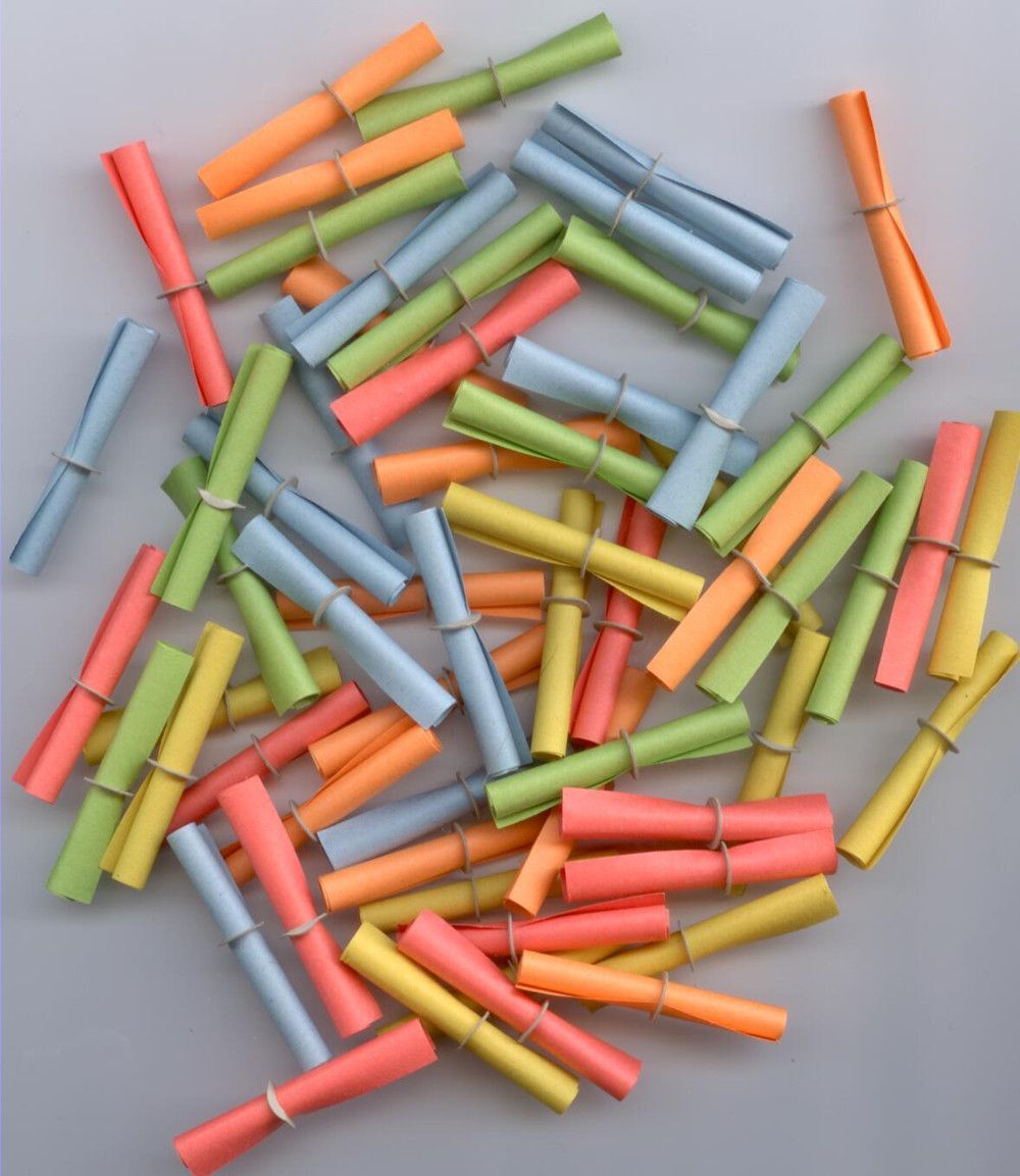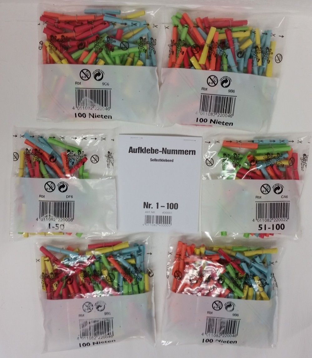 Tombola-Komplett-Set, Röllchenlose bunt, 100 Gewinne+Aufkleber+400 Nieten
