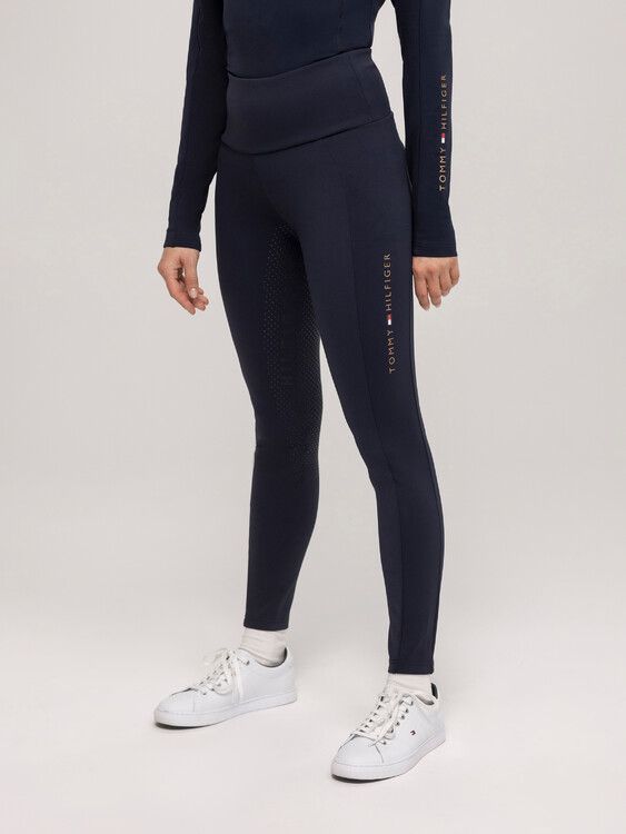 Reitleggings mit hohem Bund für deinen bequemen, aber coolen Tommy-Look. Silikon Vollbesatz super stretchiges, unterstützendes Material Smartphone-Tasche seitlich am Oberschenkel TH-Print & Flagge auf dem Oberschenkel TH-Print & Flagge auf dem Oberschenkel im Bund 86% Polyamid, 14% Elasthan