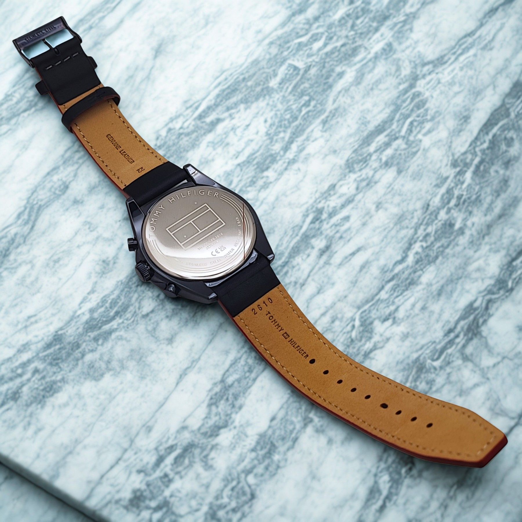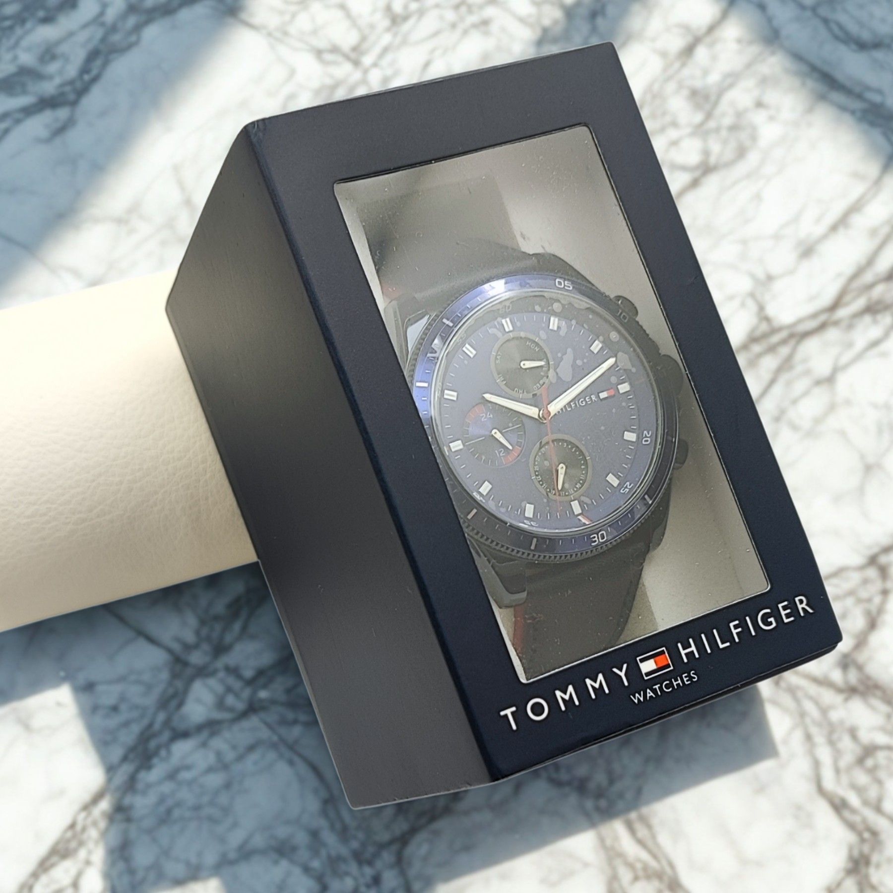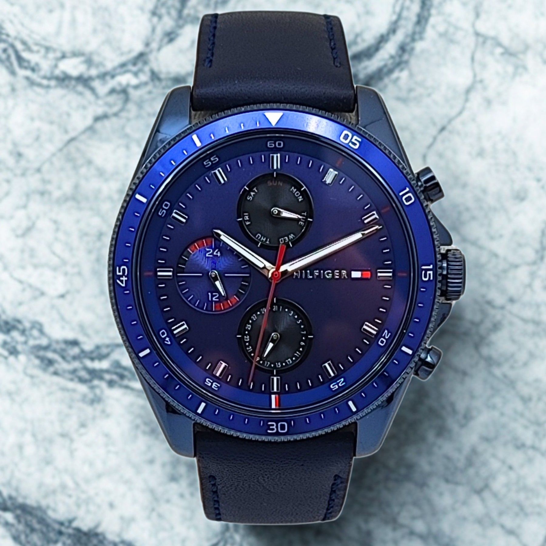 Herrenuhr - Chronograph - Tommy Hilfiger Parker 1791839 – Stil trifft auf Sportlichkeit Die Tommy Hilfiger Parker 1791839 vereint modernes Design mit maskuliner Eleganz. Das dunkelblaue Edelstahlgehäuse und das Lederarmband mit roten Akzenten verleihen der Uhr einen sportlich-klassischen Look. Das s