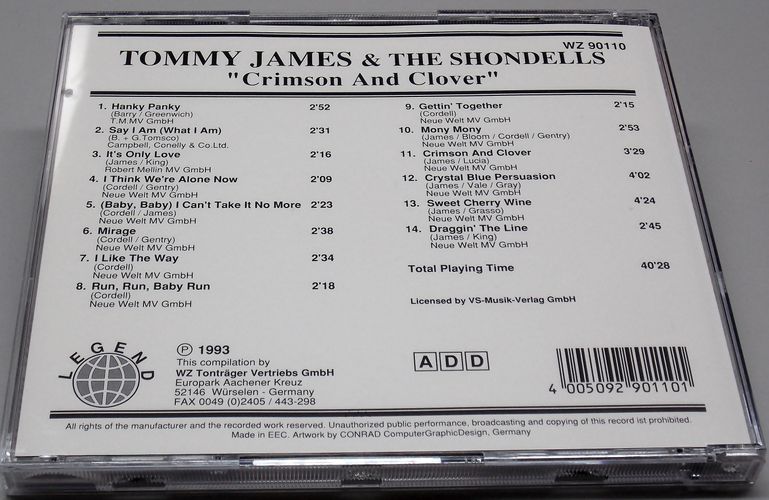 Tommy James & The Shondells - Crimson And Clover - 1993 Oldies m-/m- CD