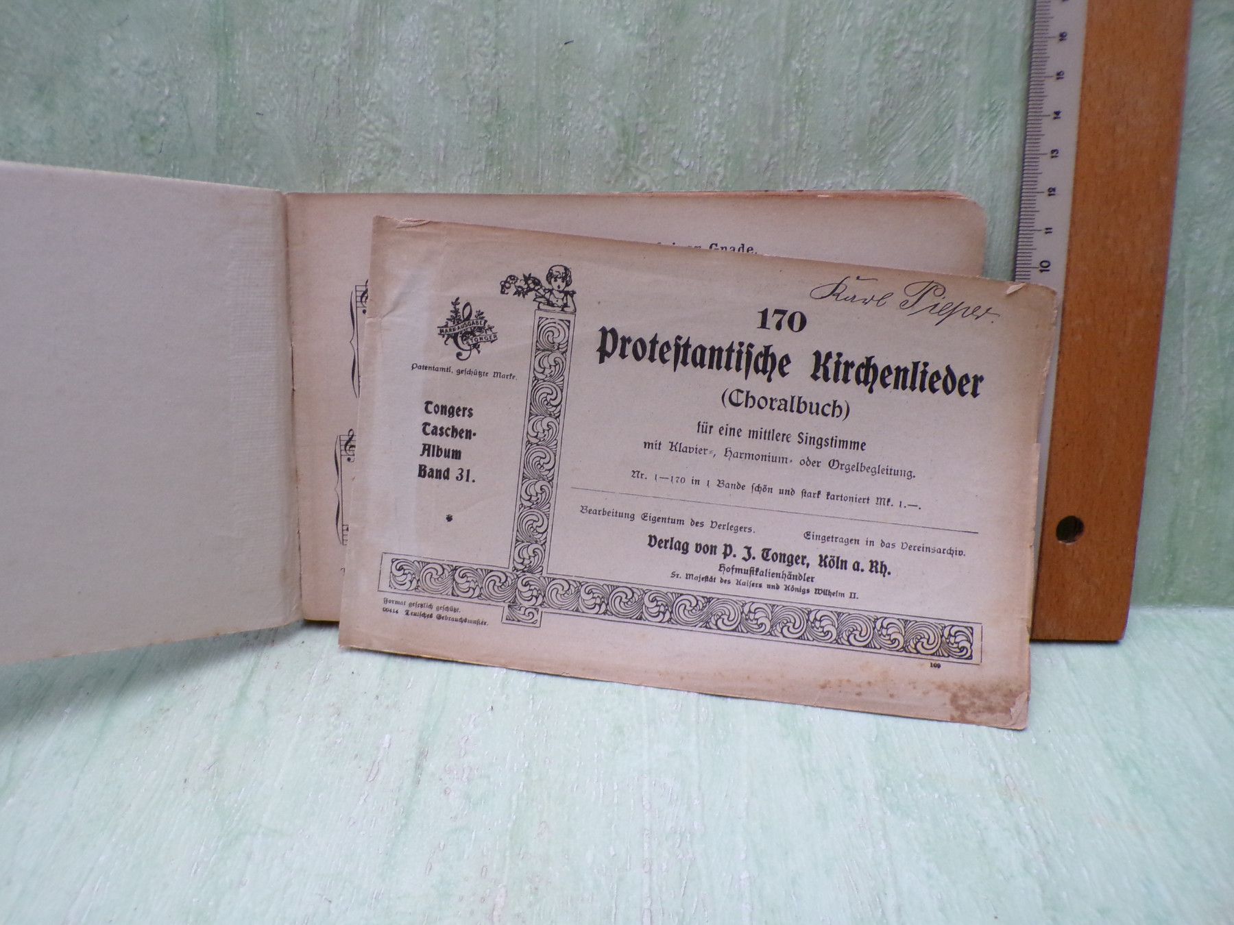Jugend- & Kinderbücher ... Erinnerungen ..... 170 protestantische Kirchenlieder . Tongers Taschenalbum Band 31 Verlag von P J Tonger , Köln am Rhein Hofmusikalienhändler Sr Majestät des Kaisers und Königs Wilhelm II für eine Mittelstimme mit Klavier- Harmonium- oder Orgelbegleitung . Zustand : e