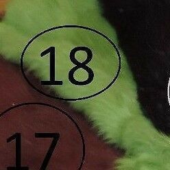 1- grün, 2- gelb, 11- kobaltblau, 12- pink, 13- dunkelbraun, 14- lavendel, 15- beige, 16- lila, 17- braun, 18- frühlingsgrün