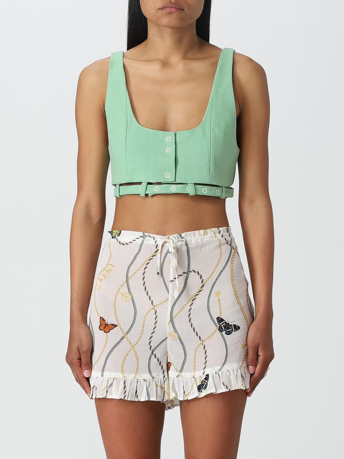 Top Ganni F7596484 Grén Bio-Baumwolle