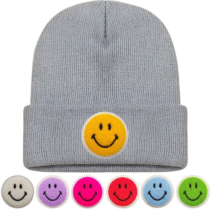 TOP HIT - Graue SMILEY Mütze mit Wünsch Smiley Hochwertige Caps Hüte Beanies
