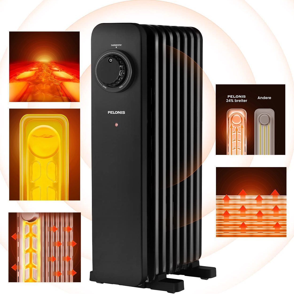 TOP Ölradiator Öl Radiator Heizer Heizkörper Heizlüfter Elektro-Heizung schwarz