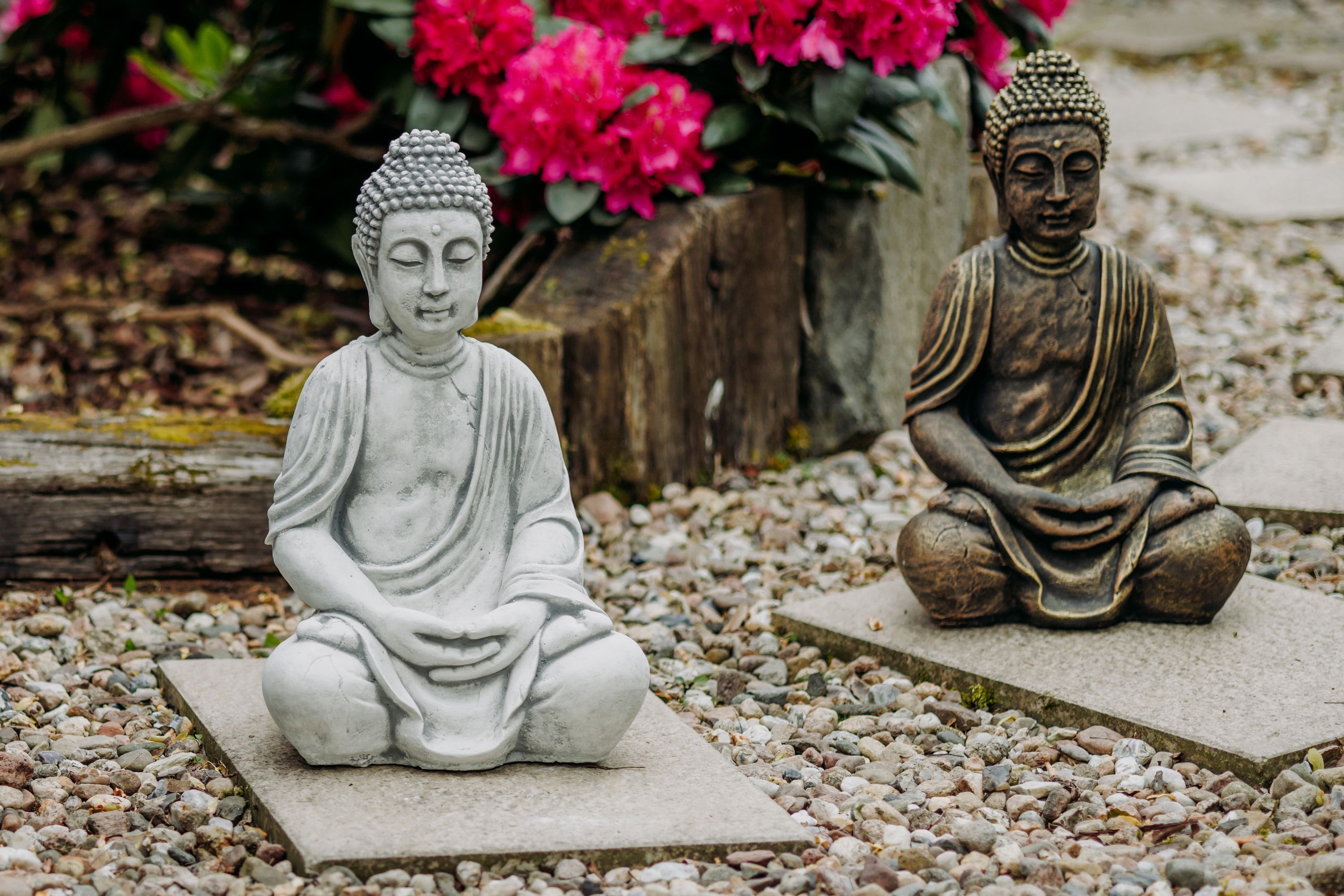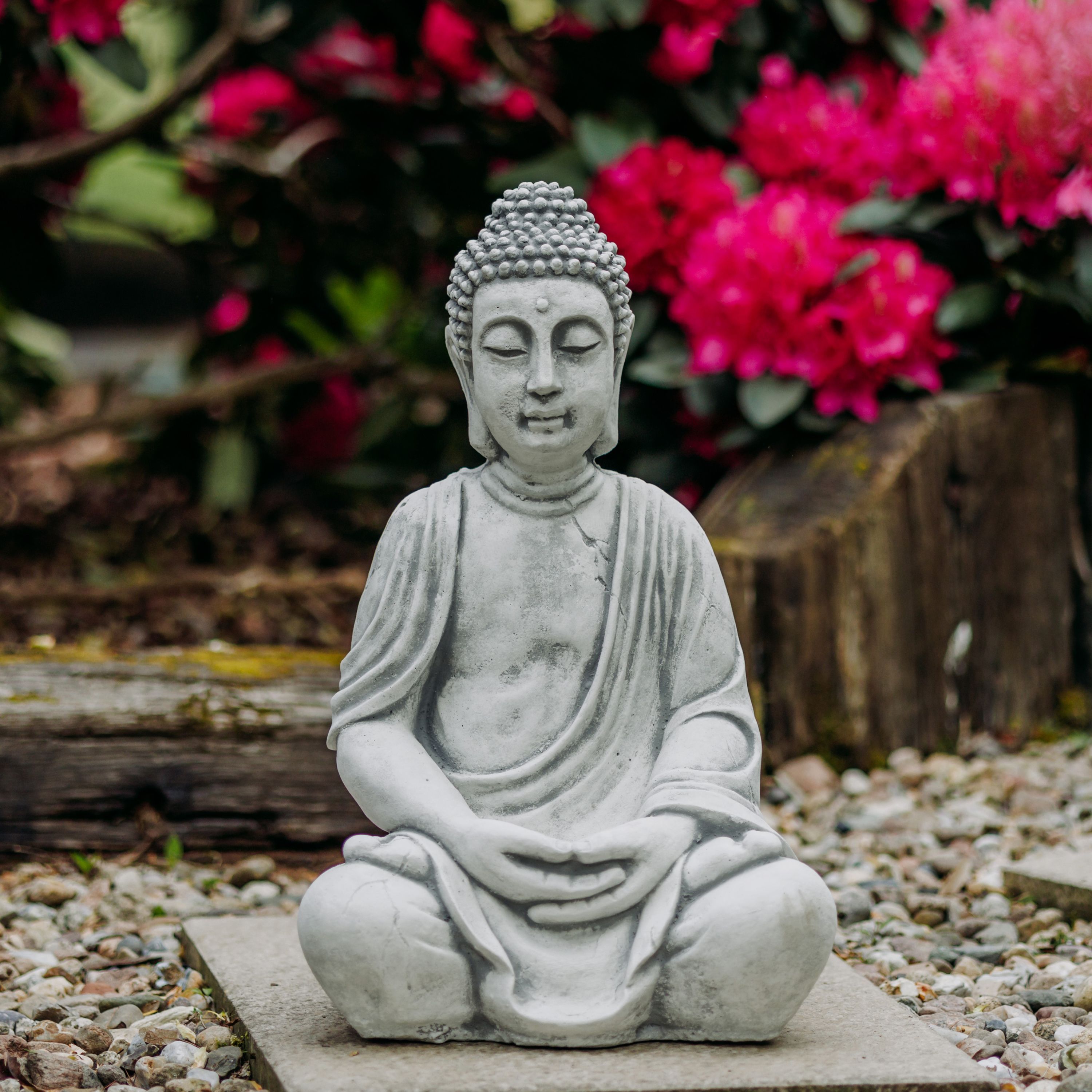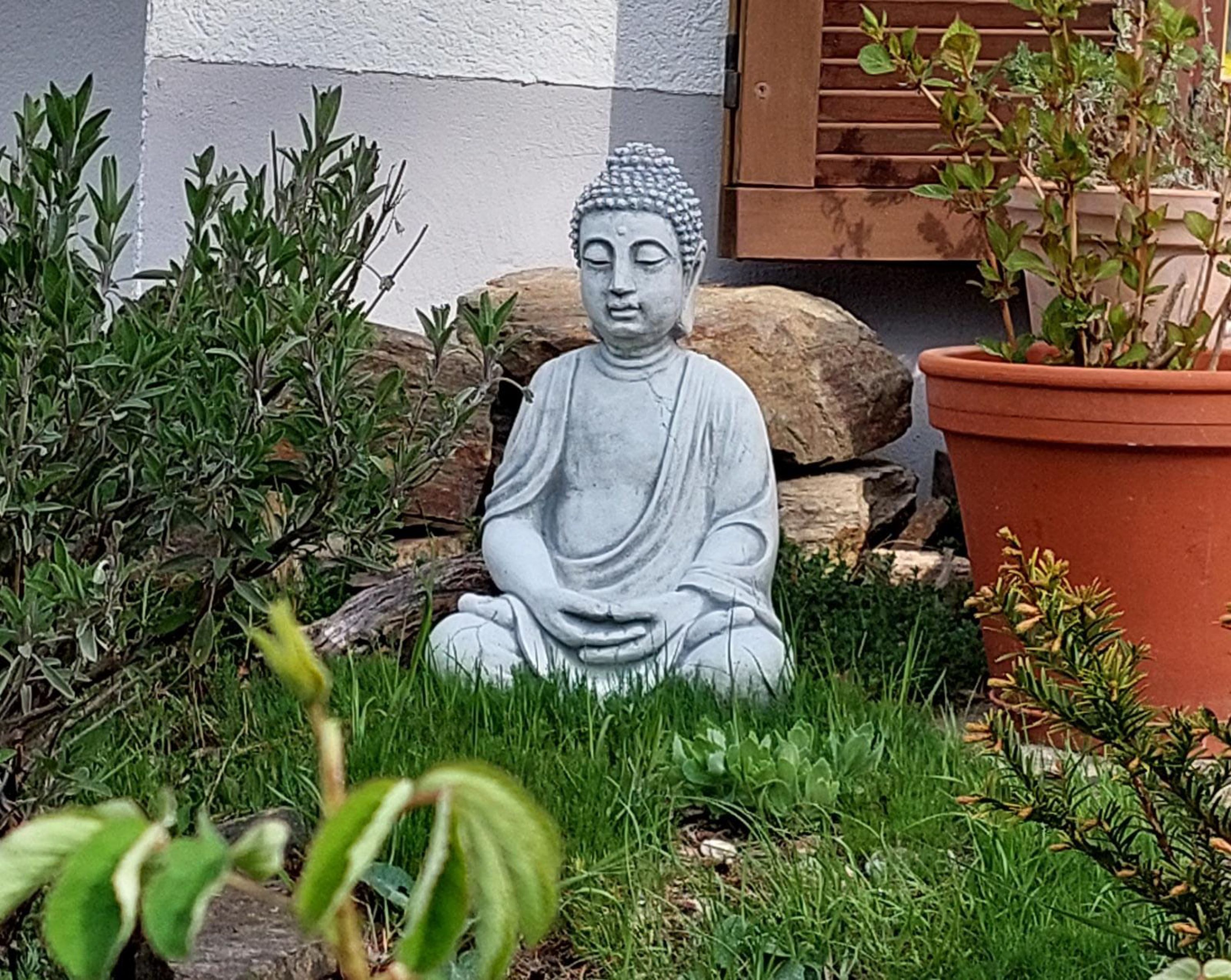 Top Modell großer massiver Stein Buddha Farbe grau Mönch aus Steinguss frostfest