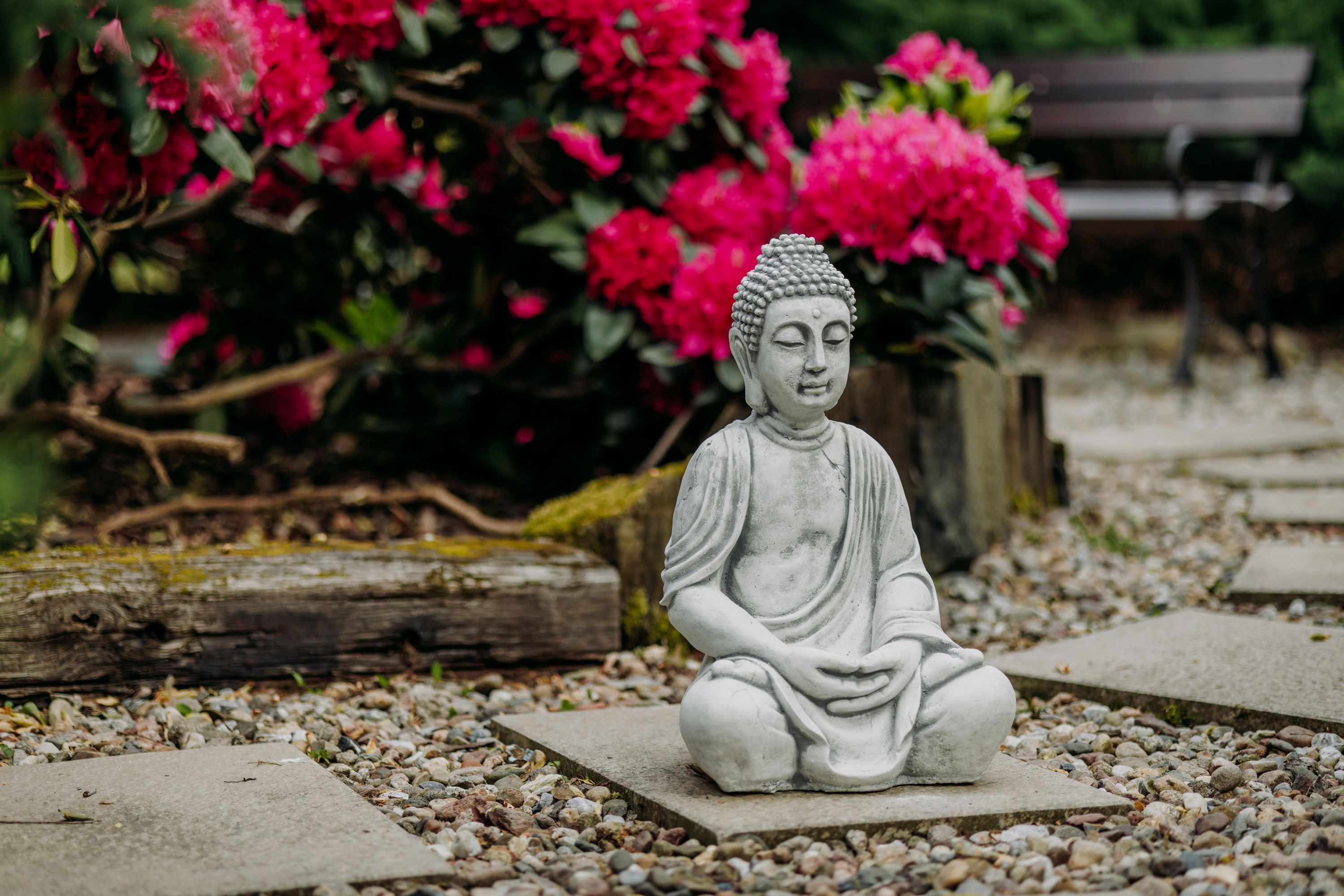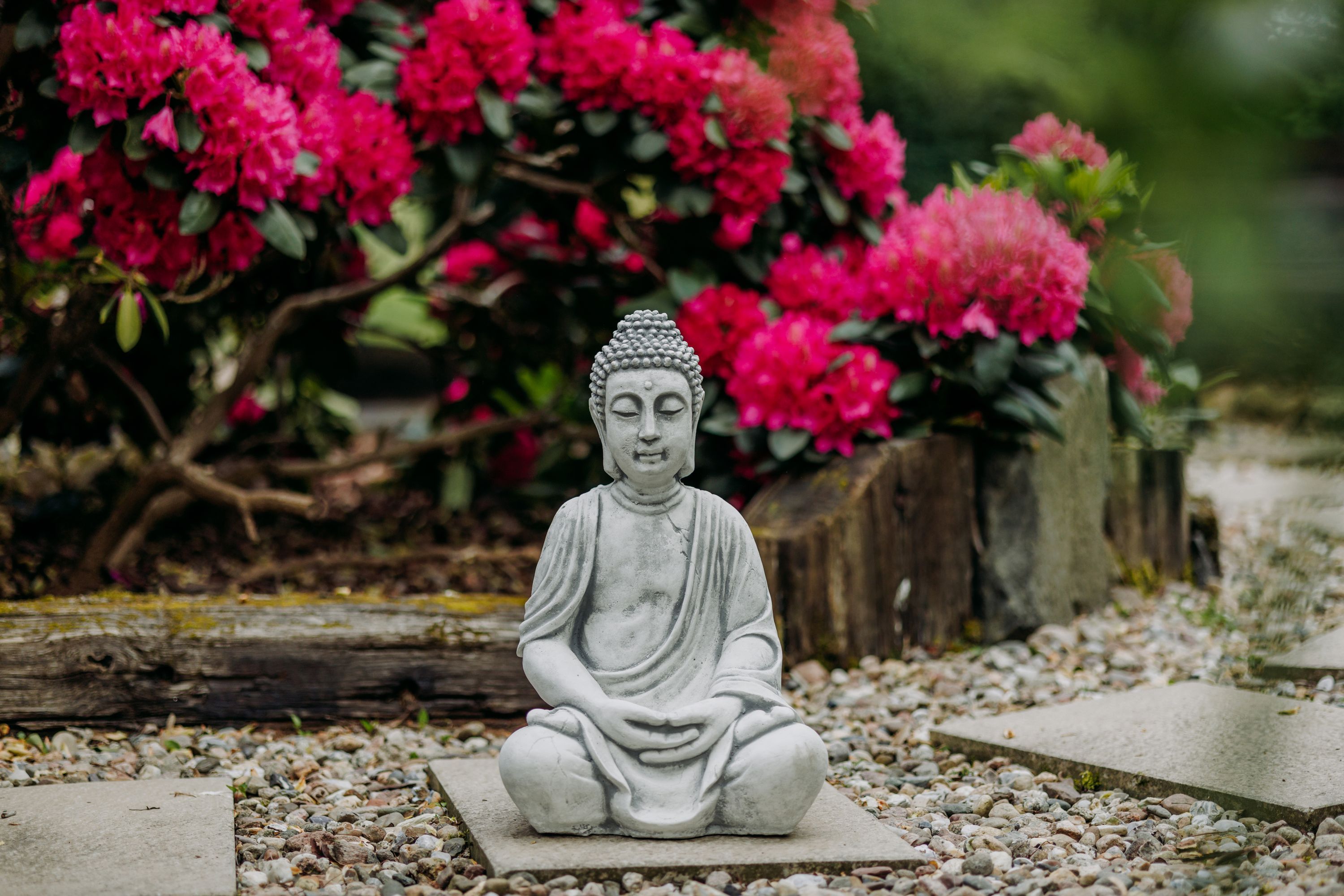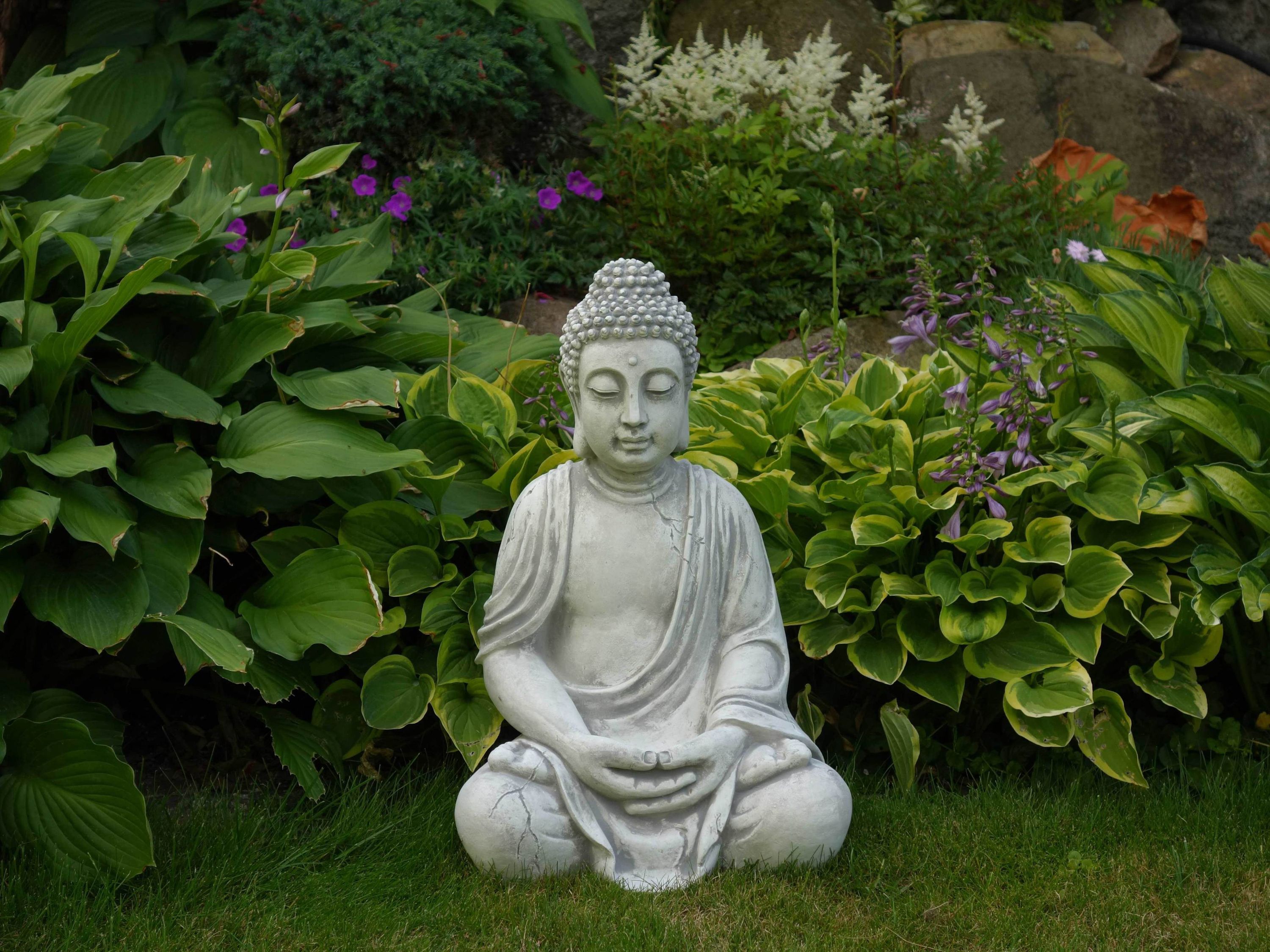 Top Modell großer massiver Stein Buddha Farbe grau Mönch aus Steinguss frostfest