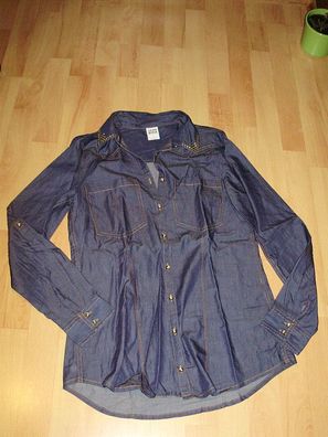 • vero moda Jeans Bluse Nieten Glitzer an Kragenspitze S wie neu