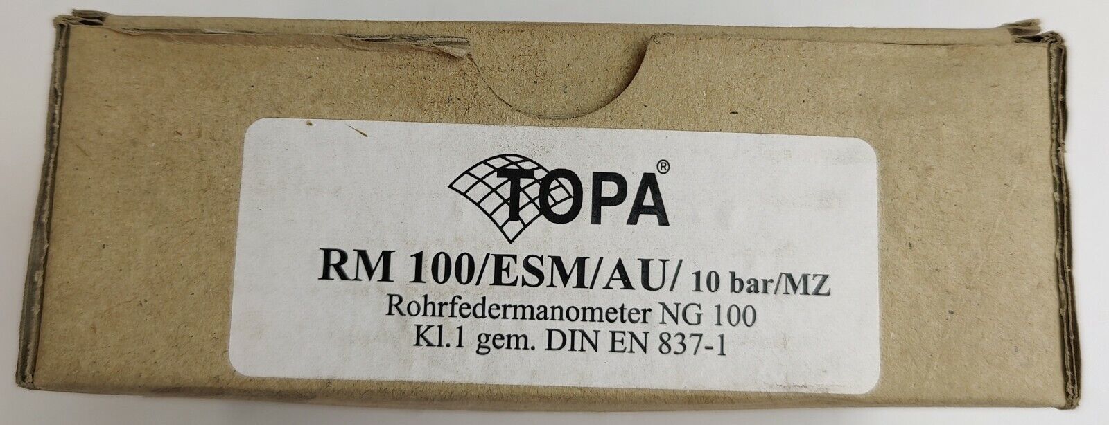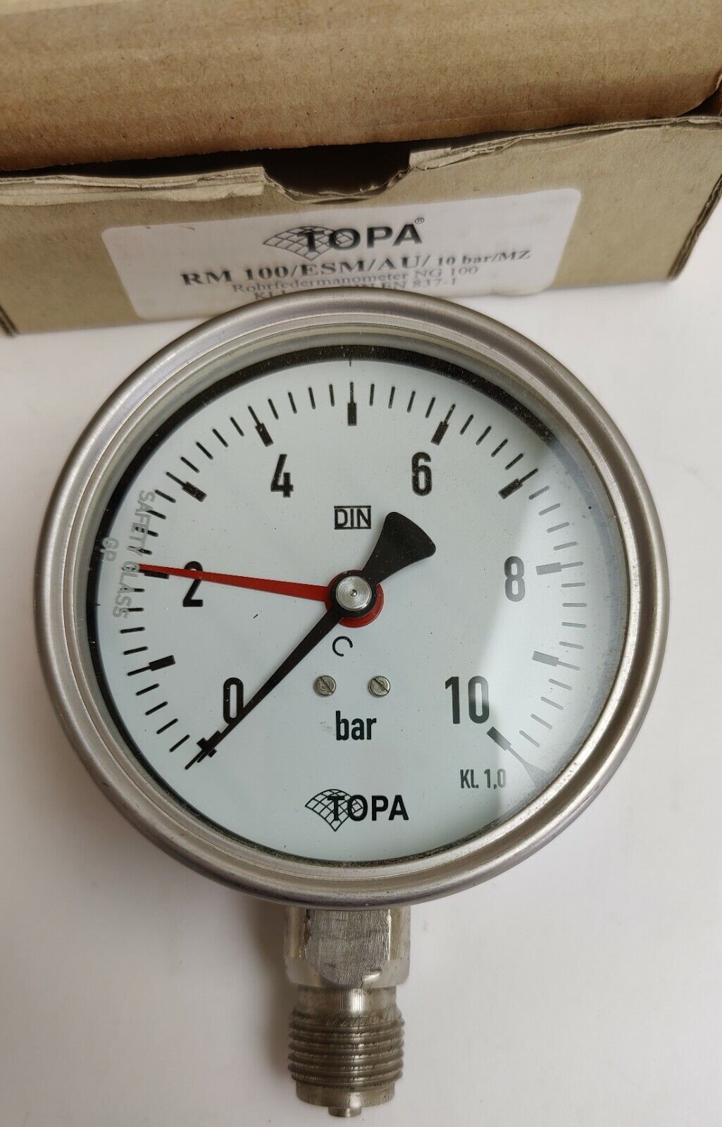 TOPA Rohrfedermanometer Ø100 0-10 bar AG 12 KL. 1 100ESEAU10barMZ