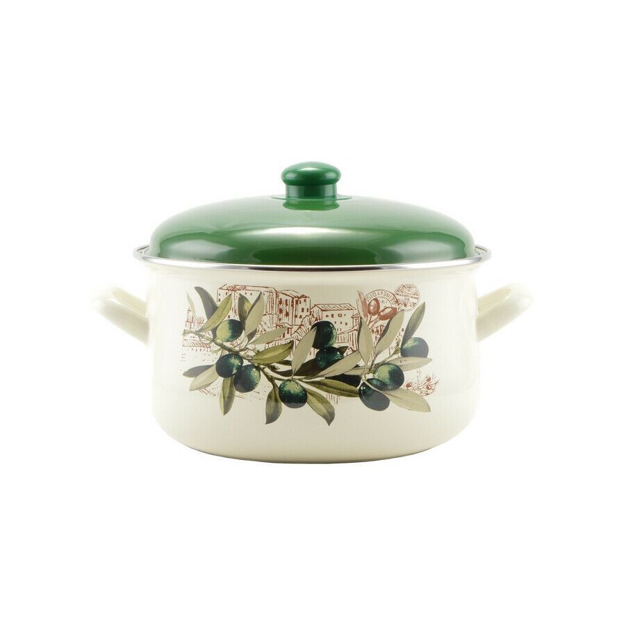 Topf Kochtopf Suppentopf Emailliert Emaille 22 cm 4,8 L Perfect Home Olive