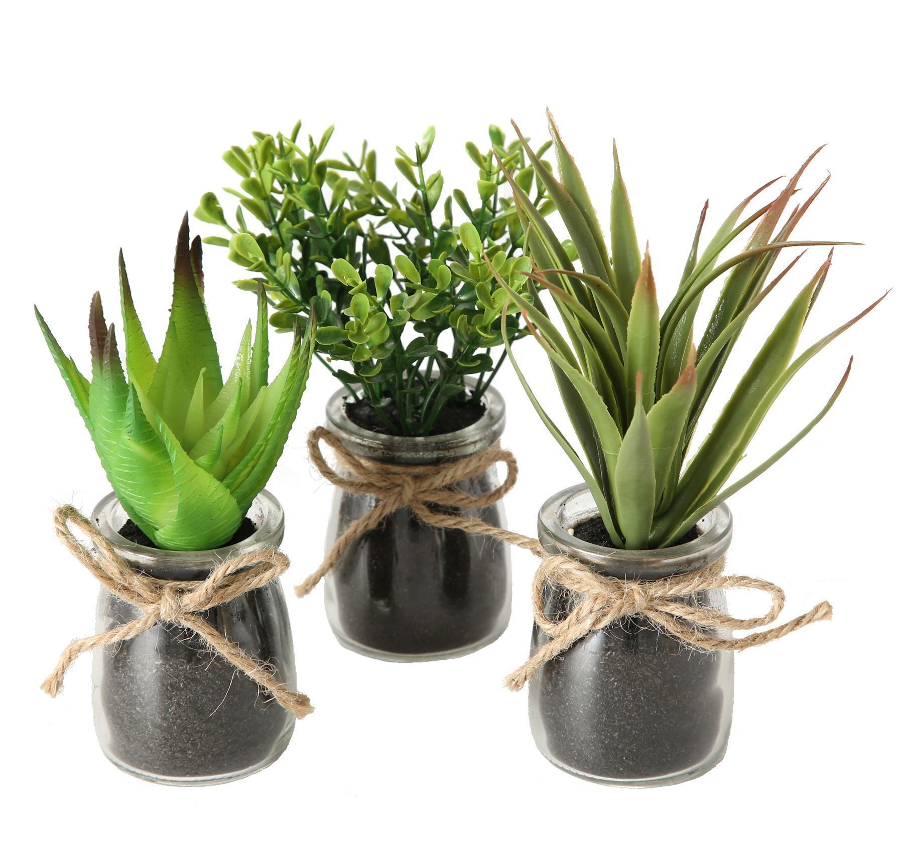Topfpflanze Sukkulente - im Glas - 3er Set - Kunstpflanze Tischdeko Pflanze künstlich