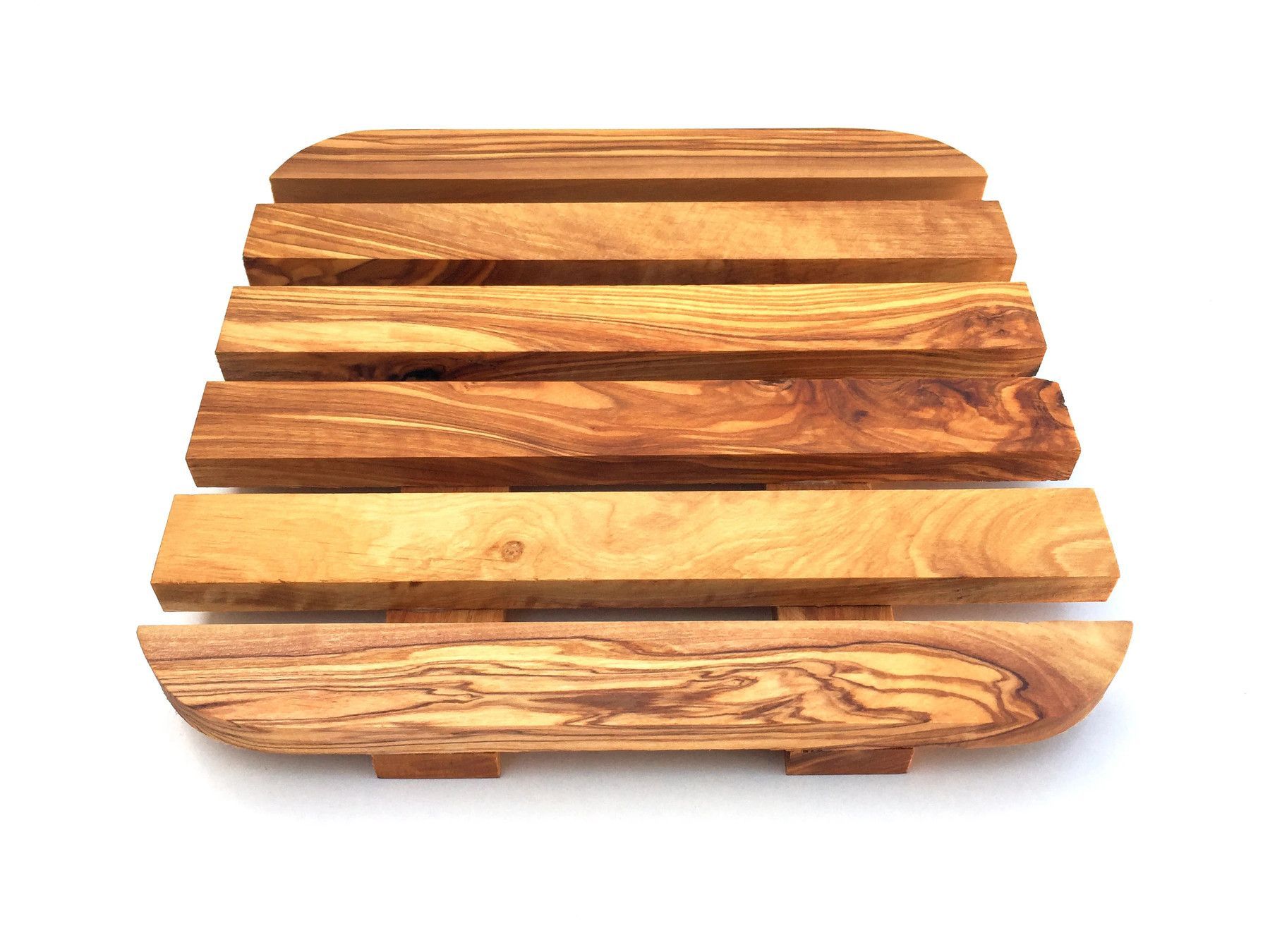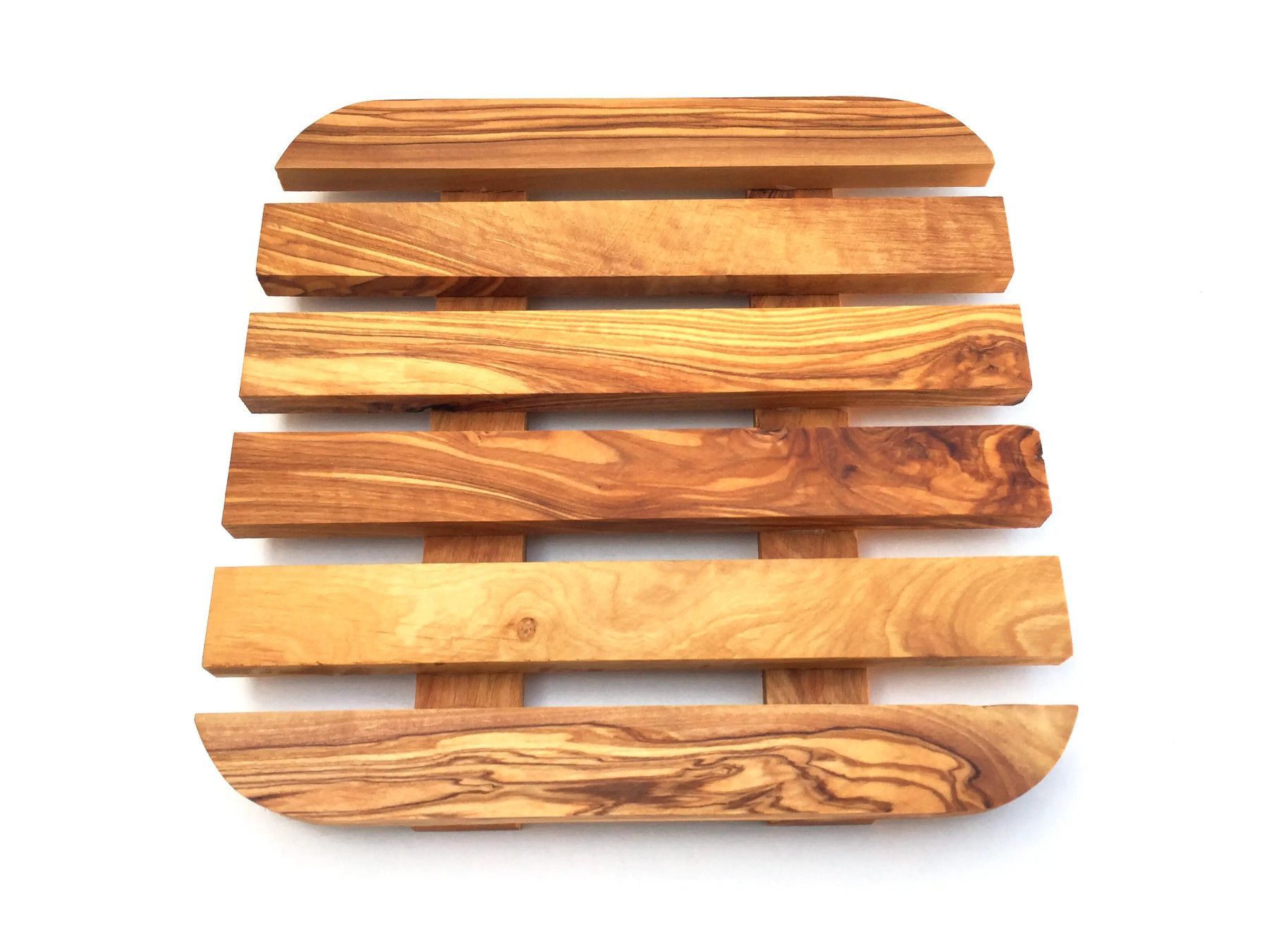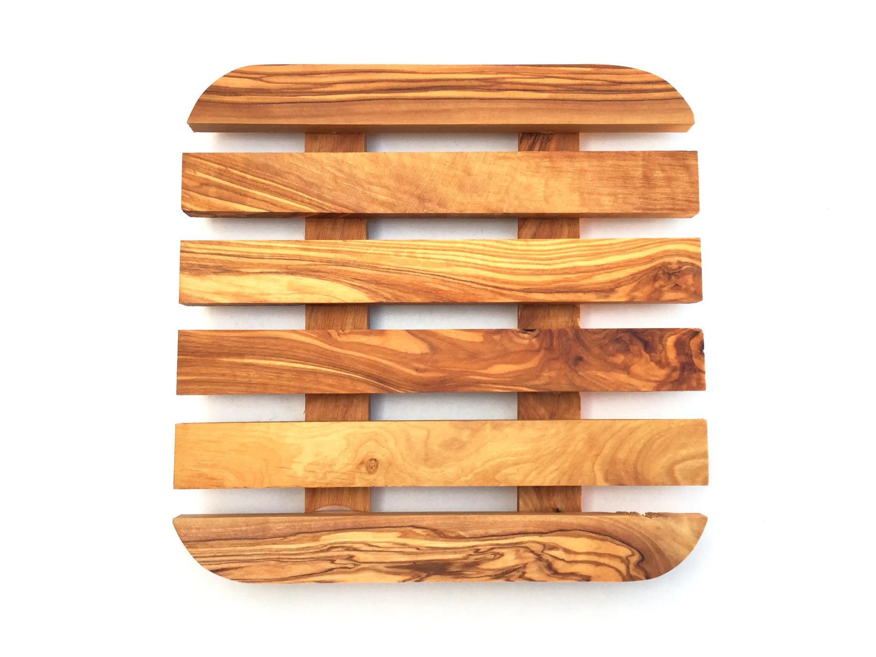 Topfuntersetzer 20 x 20 cm, quadratisch abgerundet, handgefertigt aus Olivenholz