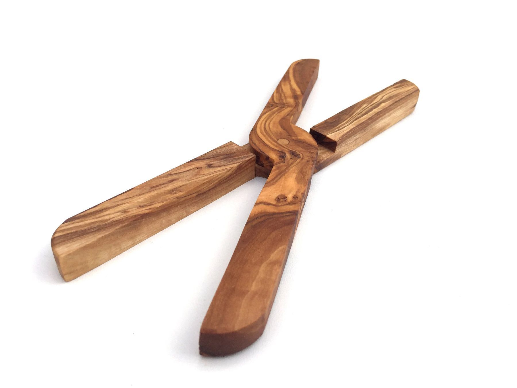 Der zusammenklappbare Topfuntersetzer ist aus Olivenholz und in Handarbeit angefertigt, was jedes Stück zu einem Unikat macht. Der stillvolle Topfuntersetzer bietet eine praktische Verwendung sowie platzsparende Aufbewahrung und passt so in jede Schublade. Anwendungen Küchenhelfer & gedeckter Tisch