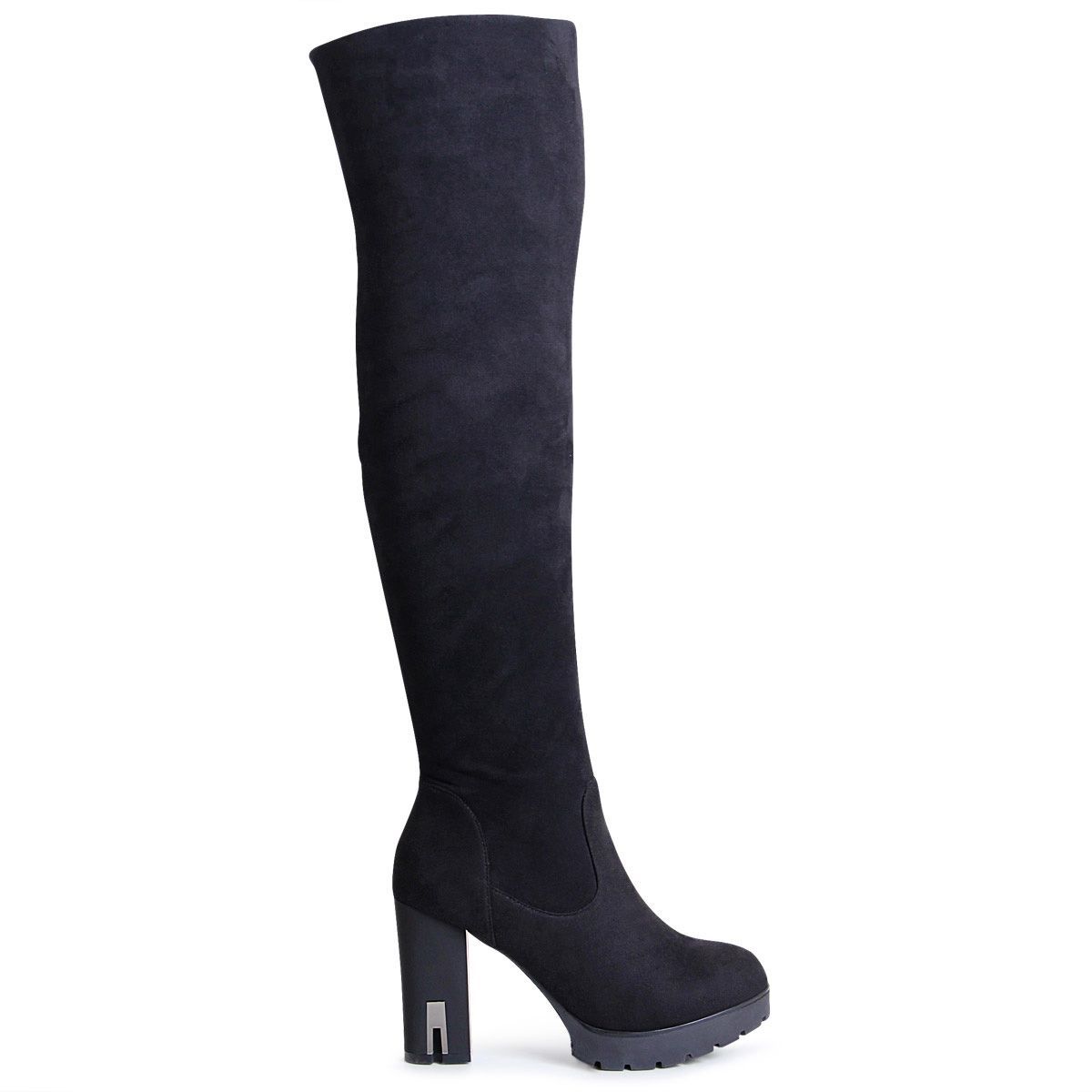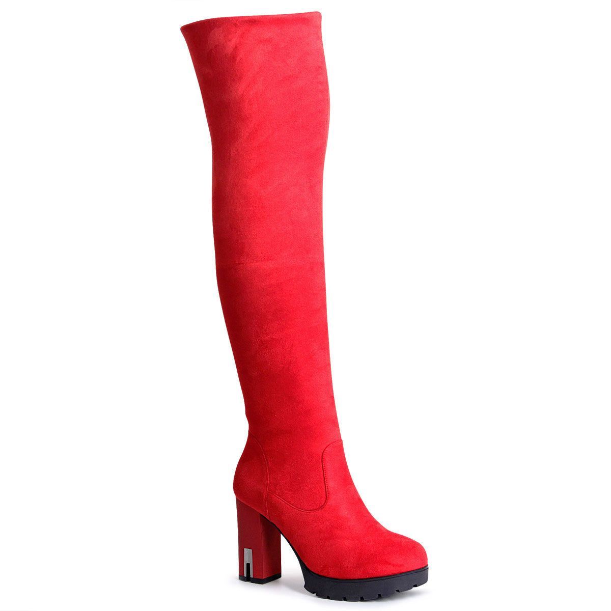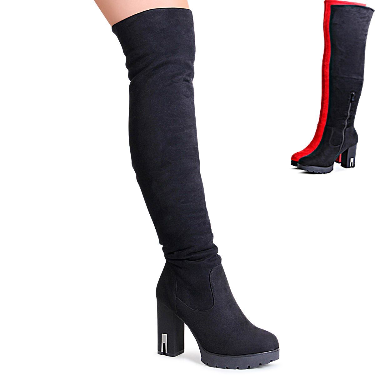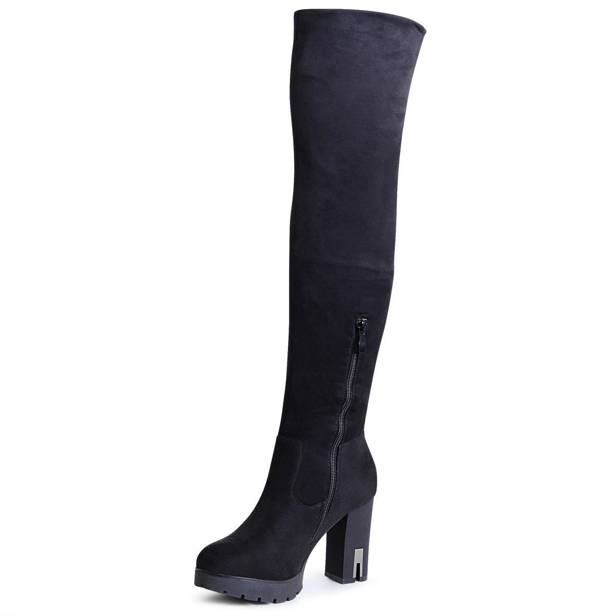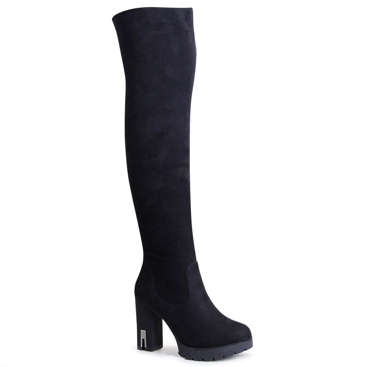 Kategorie Damen Schuhe Stiefel Schuhmodell Overknee Besonderheit Plateau, gepolstert, hochwertiges Lederimitat Kollektion Herbst Winter Absatz Blockabsatz Absatzhöhe in cm 9,5 Plateau in cm 2,5 Verschluss Reißverschluss Schuhspitze Rund Schafthöhe in cm 51 Schaftweite in cm 18 Gefüttert Ja Durchgehe