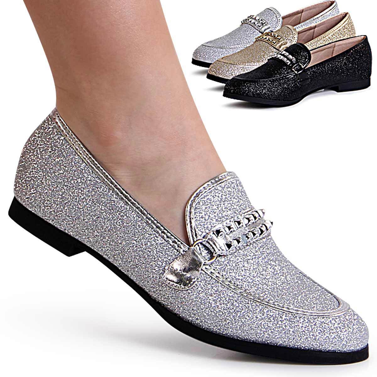 topschuhe24 1740 Damen Glitzer Halbschuhe Ballerina