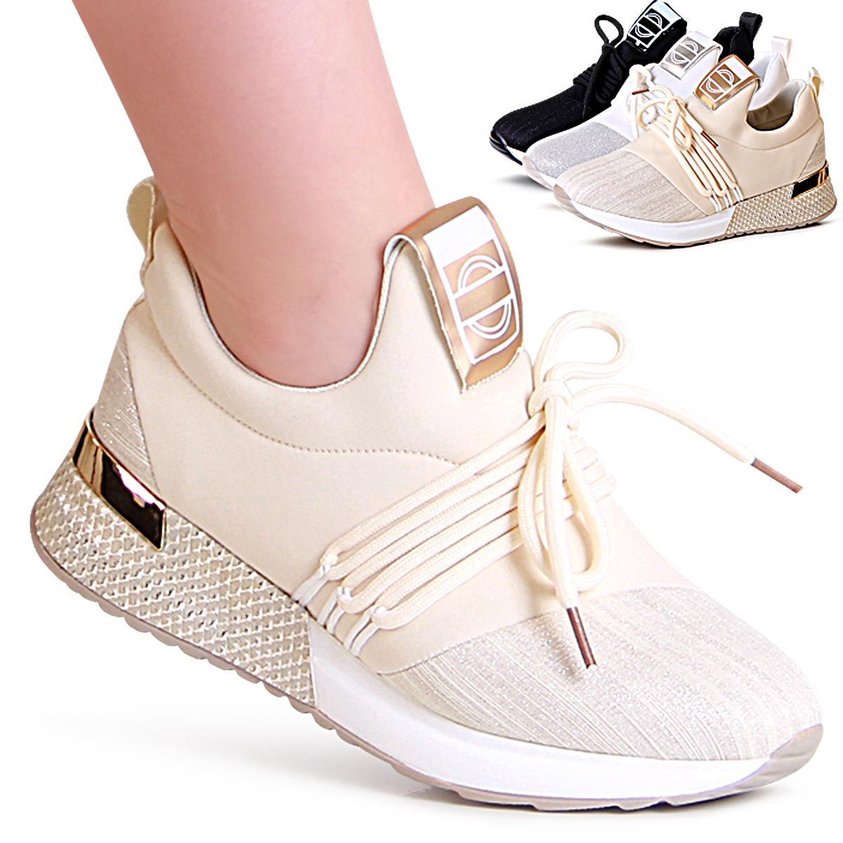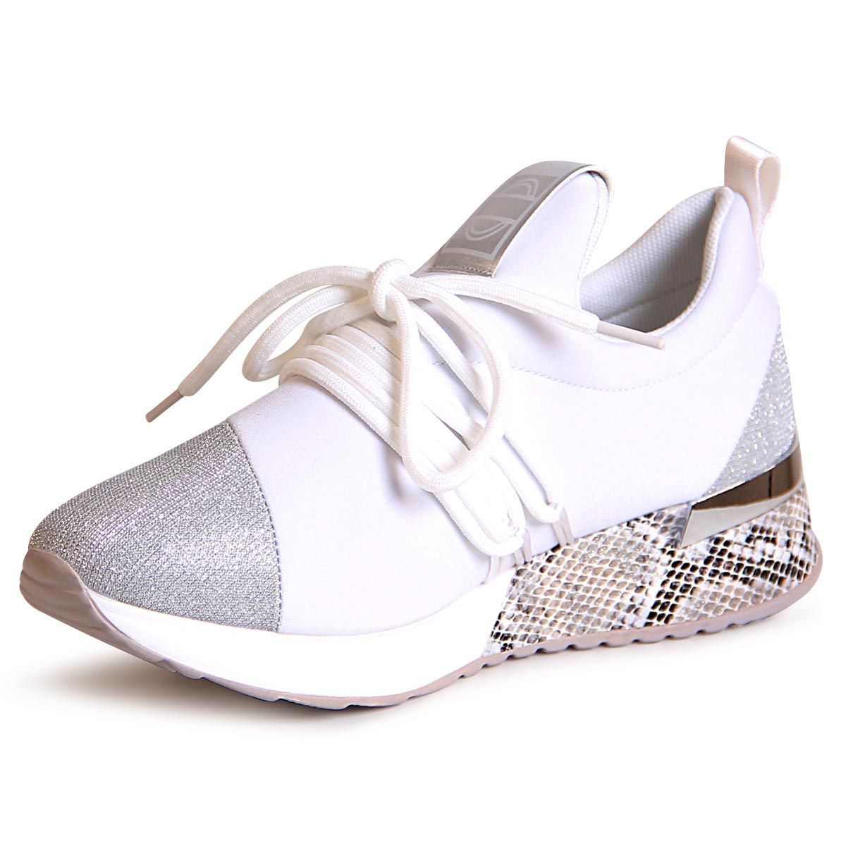 topschuhe24 1990 Plateau Sneaker Halbschuhe Glitzer
