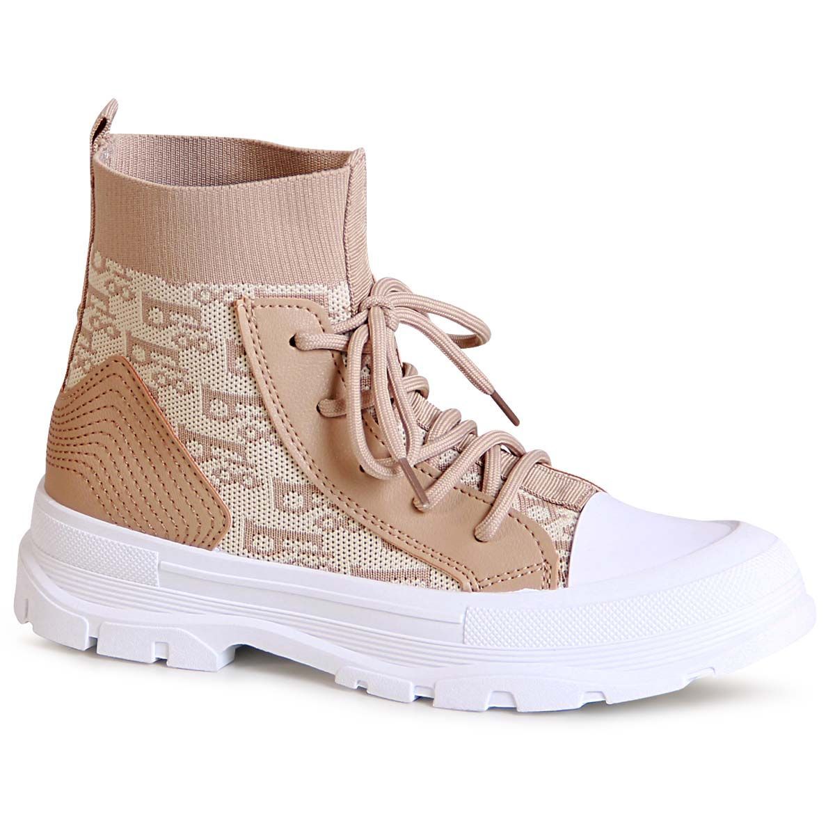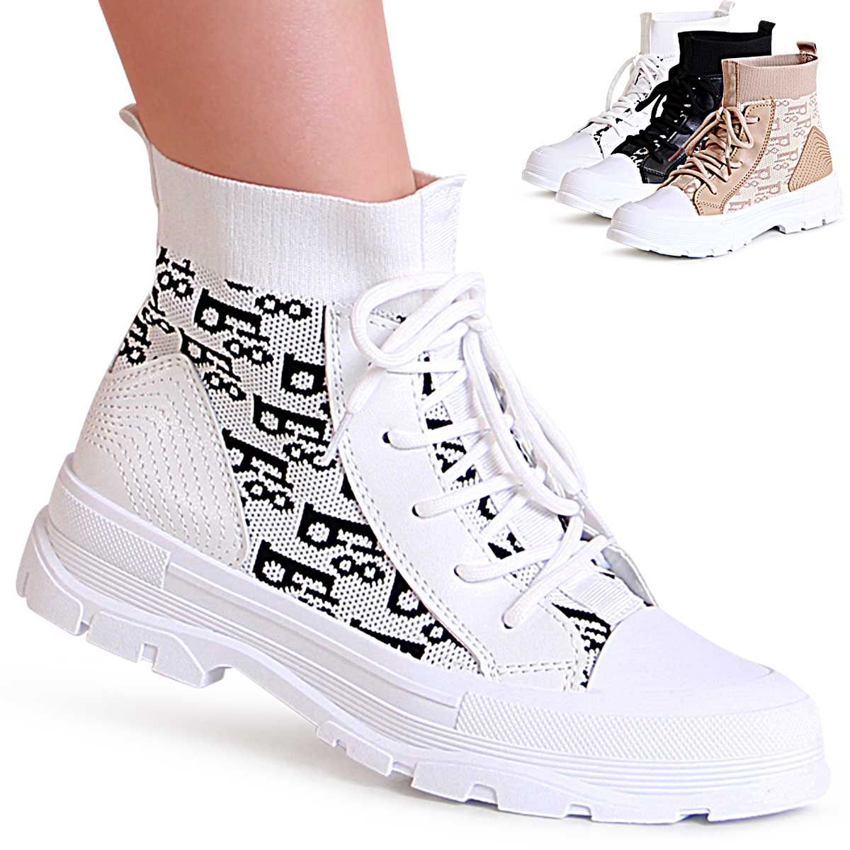 topschuhe24 2032 Damen Plateau Strick Sneaker High
