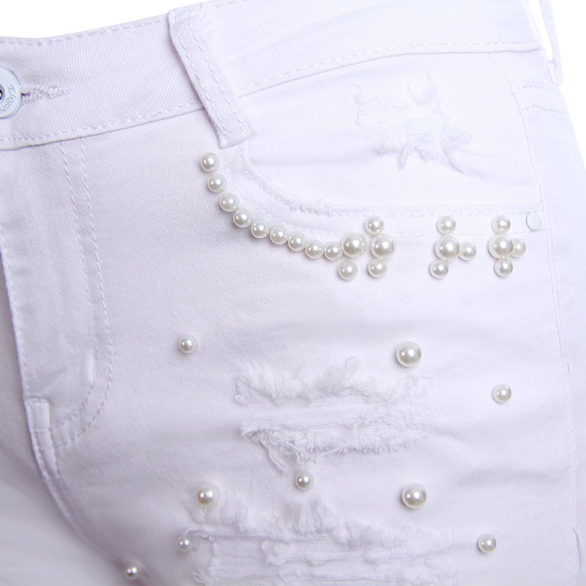 Kategorie Damen Modell Jeanshose Hosenmodell kurze Hose Bundhöhe Normal Besonderheit elastischer Bund, Destroyed, Zierperlen, ausgefranster Saum Stretch Ja, sehr angenehme Passform Kollektion Frühling Sommer Verschluss Reißverschluss Material 95% Baumwolle, 5% Elasthan Waschanleitung Maschinenwäsche